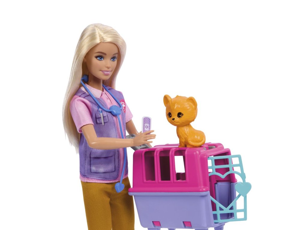 Herní set Barbie® Panenka zachraňuje zvířata - blondýnka inspiruje děti k vytváření láskyplných příběhů o zvířatech! Set obsahuje panenku v odborném oblečku a dodává se se dvěma zvířaty, přepravkou a více než 10 doplňky pro hraní různých rolí a zábavu při vyprávění příběhů, jako jsou lékařská brašna, lahvičky a vana. Panenka neumí samostatně stát. Barvy a vzhled výrobku se mohou lišit.