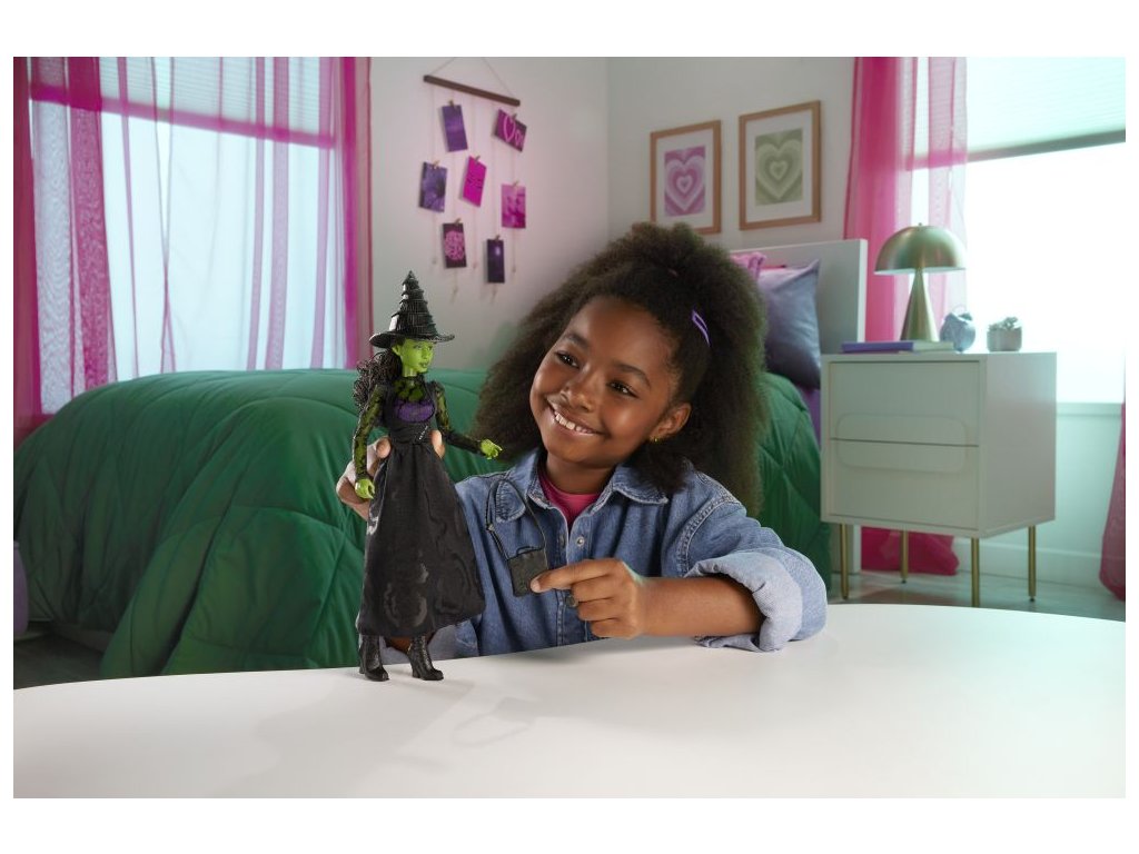 Elphaba, nezapomenutelná čarodějka! Tato stylová módní panenka inspirovaná filmem Čarodějka zachycuje kouzlo opravdového přátelství. Má ikonický vzhled z filmu, zelenou kůži, copánky a další věrné detaily. Panenka je oblečená do odnímatelného oblečku, nechybí ani školní brašna a klobouk. Díky pohyblivým kloubům je možné ji nastavit do různých dynamických pozic.