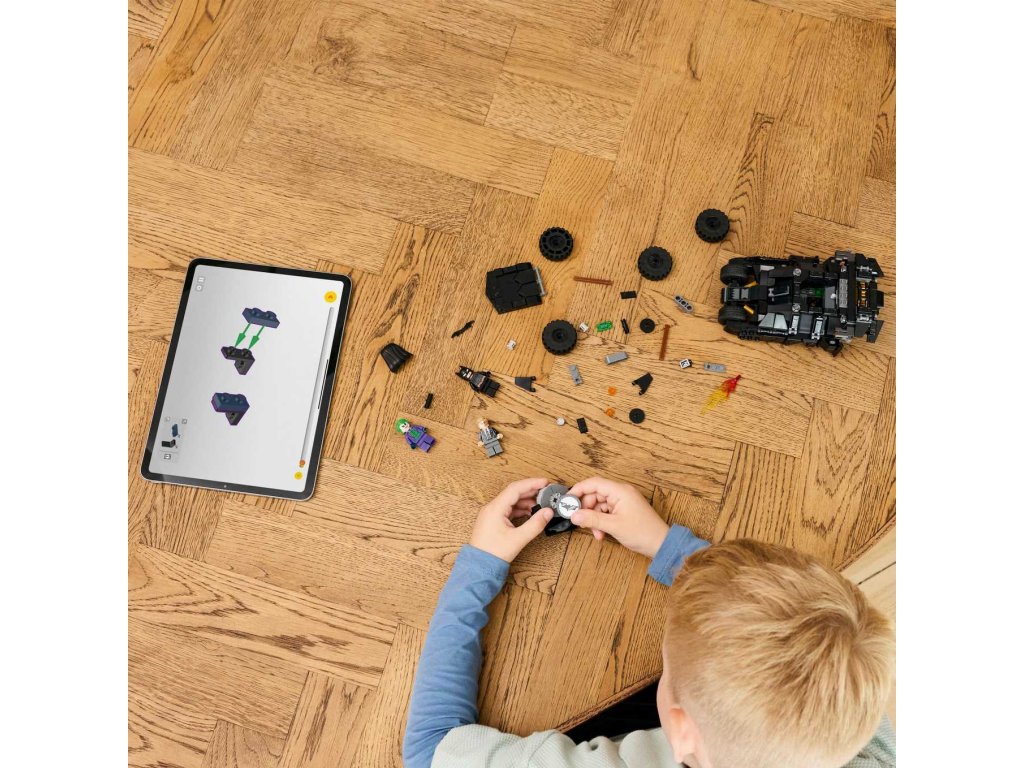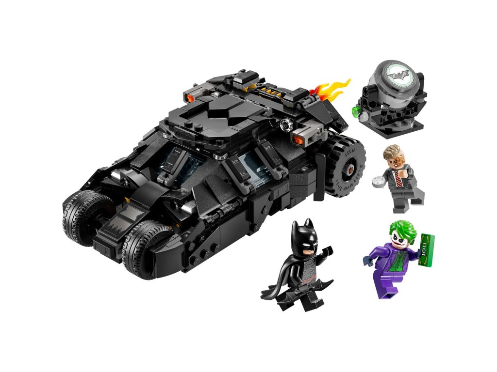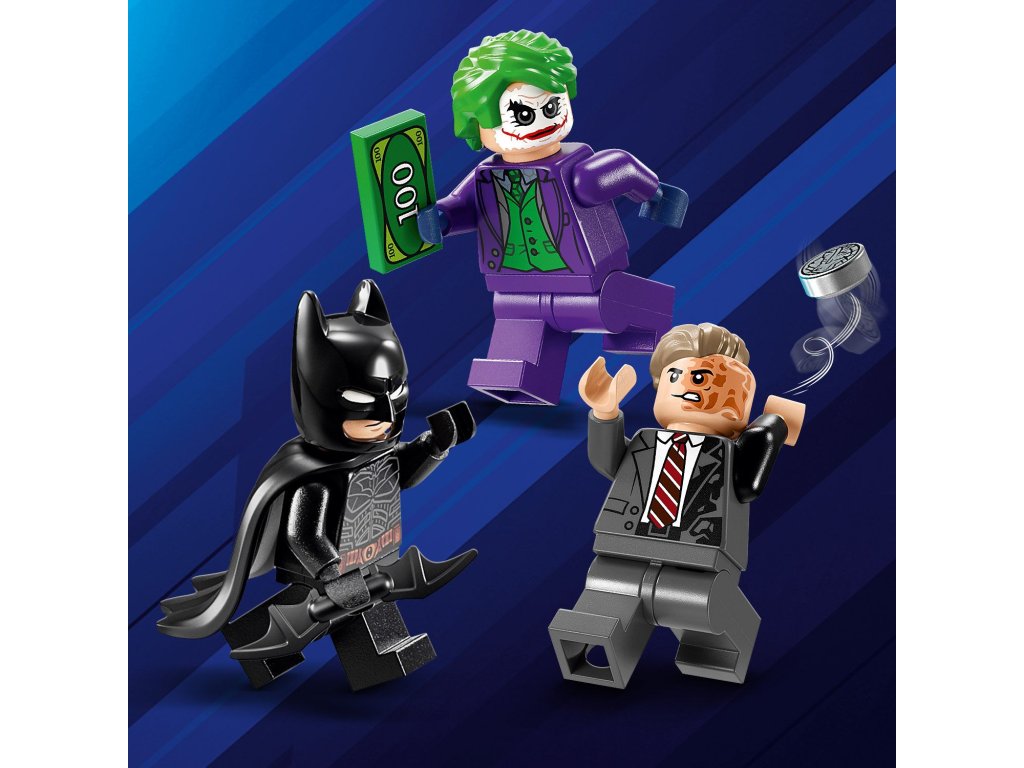 Stavebnice Batman™ Tumbler vs. Two-Face™ a Joker™ (76303) je zábavná hračka pro děti, které milují Batmana, vozidla, kreativní stavění z kostek LEGO® a superhrdinská dobrodružství. Dopřejte malým superhrdinům od 8 let akční hračku s Batmanem s touto prémiovou stavebnicí LEGO se slavným Batmobilem Tumbler z klasického filmu Temný rytíř. Tato superhrdinská stavebnice LEGO obsahuje 3 minifigurky oblíbených postav: Batmana vyzbrojeného Batarangem, Jokera s balíkem peněz a Two-Face s typickou stříbrnou mincí. Sestavitelný Tumbler Batmobil lze otevřít a odhalit přístrojovou desku a kokpit s prostorem pro Batmana. Z koncovky výfuku vozidla vyčnívá odnímatelný prvek plamene. Projektor Bat-Signalu (nesvítí) lze naklánět a otáčet o 360 stupňů v obou směrech. Pro ještě větší digitální zábavu stavitelé můžou přibližovat a otáčet modely ve 3D a sledovat svůj pokrok pomocí zábavné a intuitivní aplikace LEGO Builder.