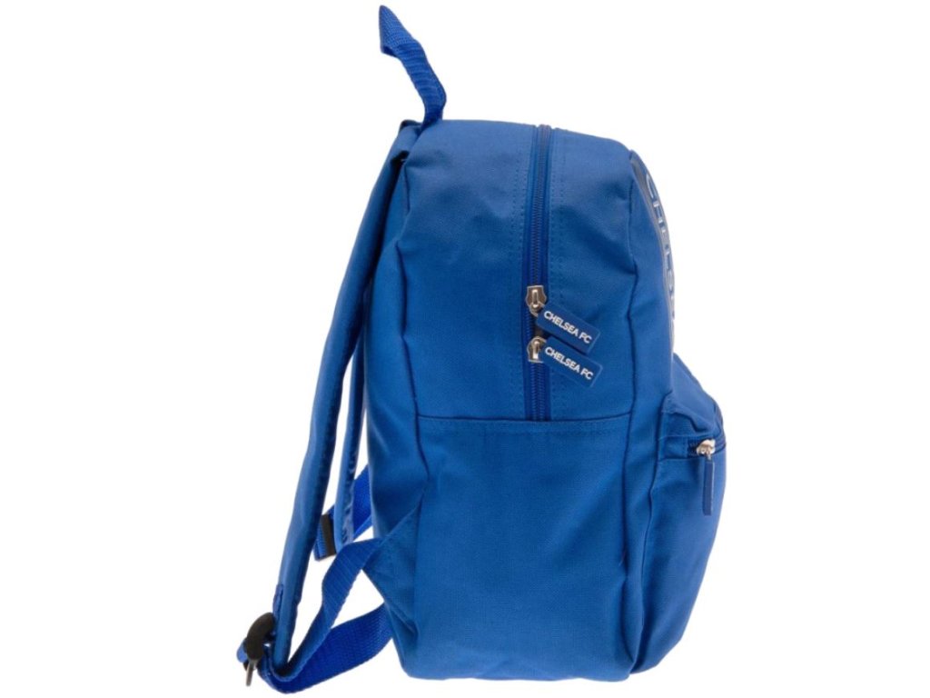 Modrý dětský jednoprostorový batoh s přední kapsou. Batoh v barvách a se znakem britského fotbalového klubu FC Chelsea se skvěle hodí pro malé fanoušky! Má nastavitelné popruhy a ucho pro snadné nošení v ruce.