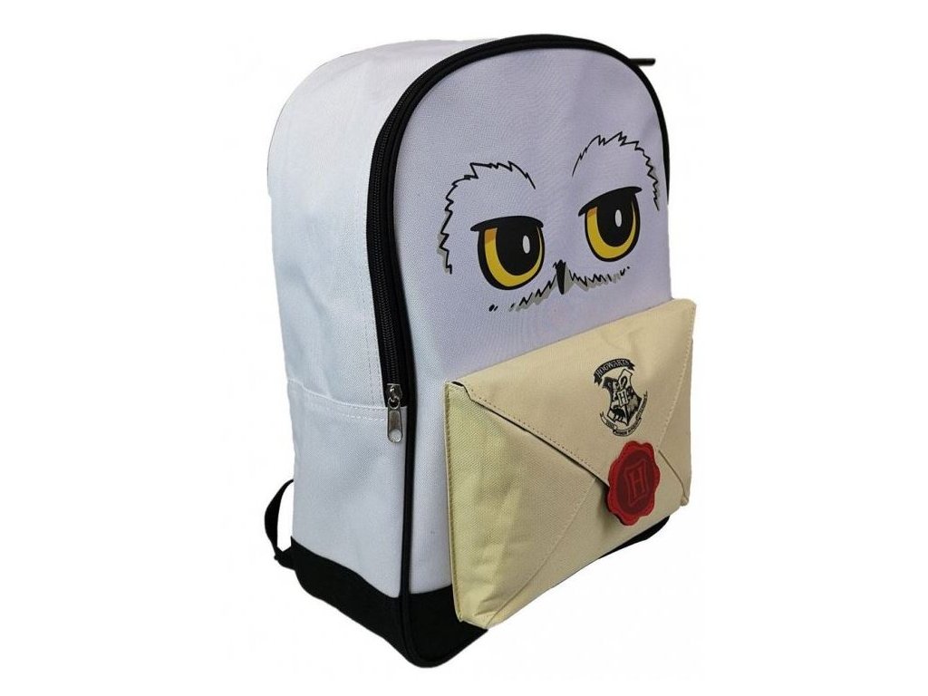 Jednoprostorový bílý batoh s motivem sněžné sovy Hedviky s přední kapsou ve tvaru 3D příjmacího dopisu do Bradavic pro Harryho Pottera. Batoh disponuje hlavní velkou kapsou, malou kapsou na drobnosti a cennosti, délkově nastavitelnými popruhy a uchem pro snadné nošení v ruce.