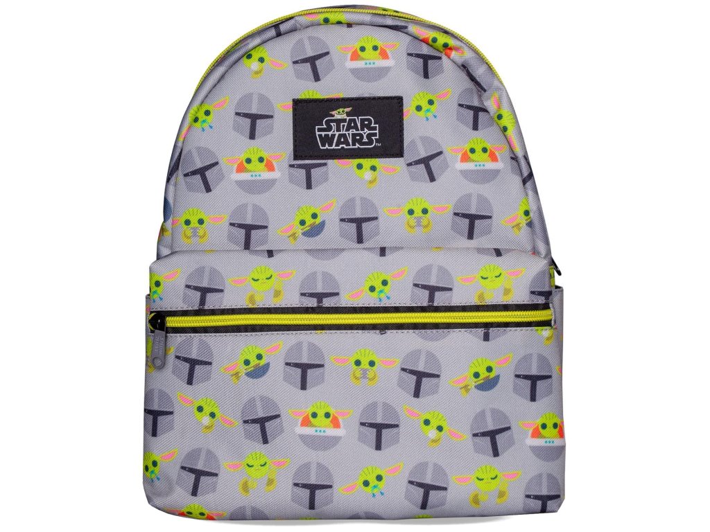 Šedý batoh se zelenými detaily vyvedený s motivem postavy The Child a Bounty Hunter ze seriálu The Mandalorian. Batoh má nastavitelné popruhy a poutko pro snadné nošení v ruce.