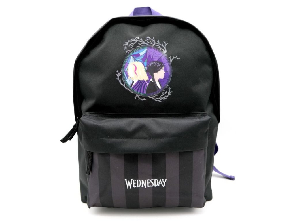 Oficiální produkt - batoh z katalogu výrobků s grafikou a licencí populárního mysteriózního seriálu Wednesday od společnosti Netflix.