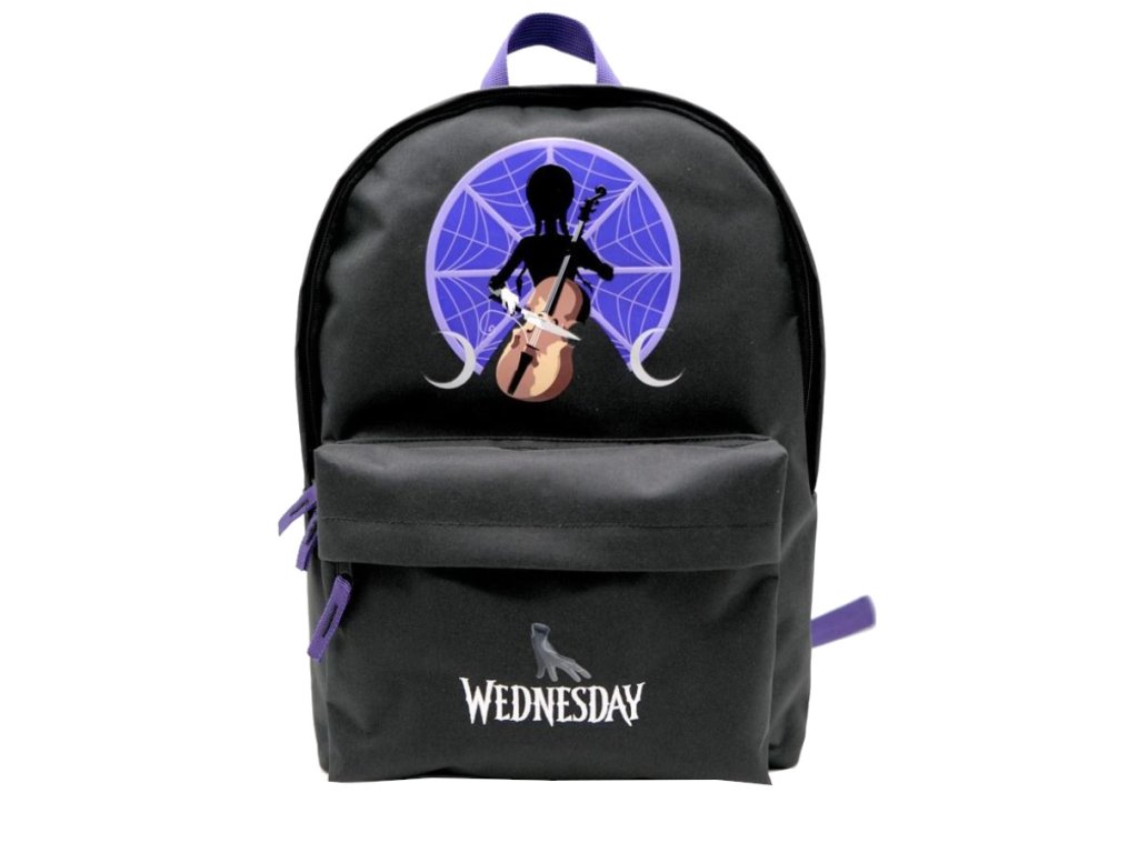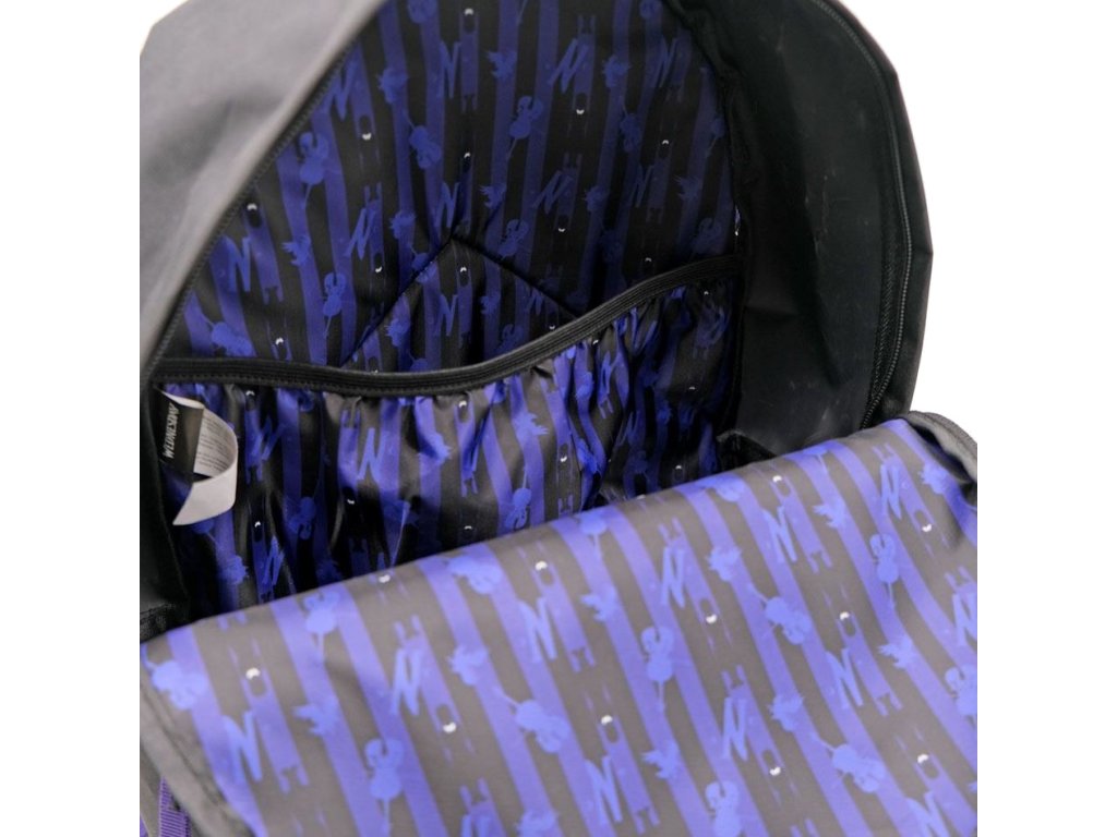 Oficiální produkt - batoh z katalogu výrobků s grafikou a licencí populárního mysteriózního seriálu Wednesday od společnosti Netflix.