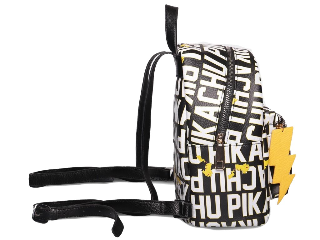 Atraktivní černý batoh vyvedený v motivu Pikachu lettering s různými grafickými a designovými detaily Pokémon. Batoh má nastavitelné popruhy a poutko pro snadné nošení v ruce pro každého milovníka a chytače Pokémonů.