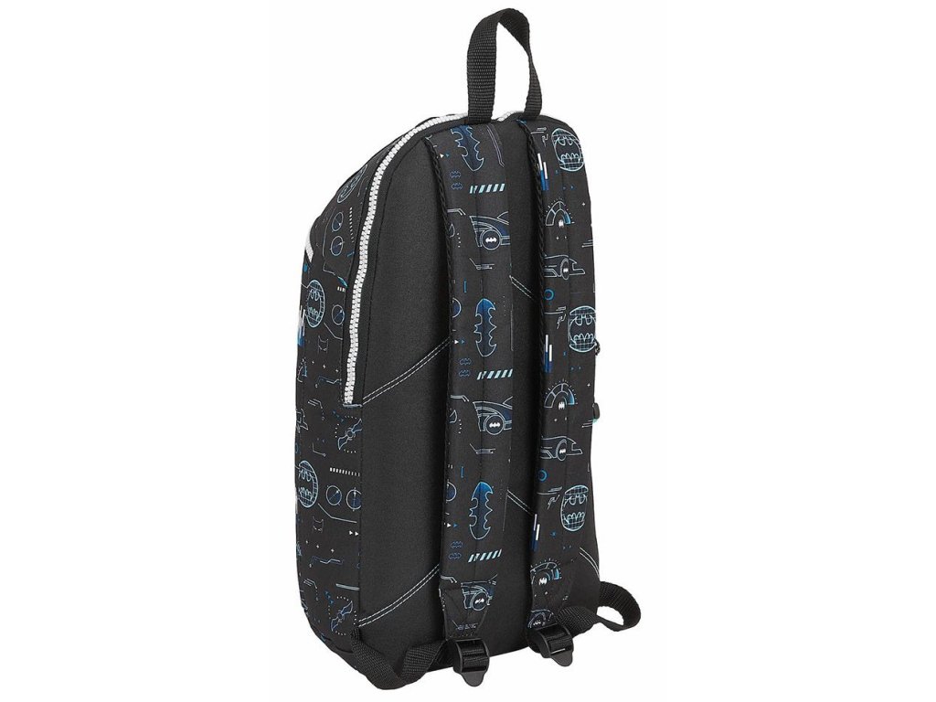 Černý batoh s detaily a znakem superhrdiny Batman. Batoh má interiér podšitý látkou. Ergonomické polstrování zad a ramen a pohodlné a nastavitelné ramenní popruhy jsou součástí batohu. Vyrobeno z pevného polyesteru se snadno rozepínatelnými zipy. Ideální pro každodenní použití do školy nebo výlety.