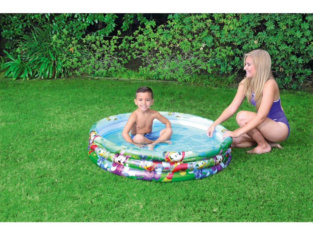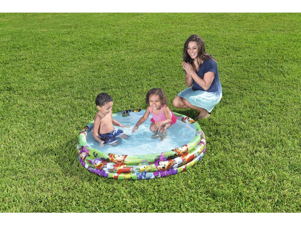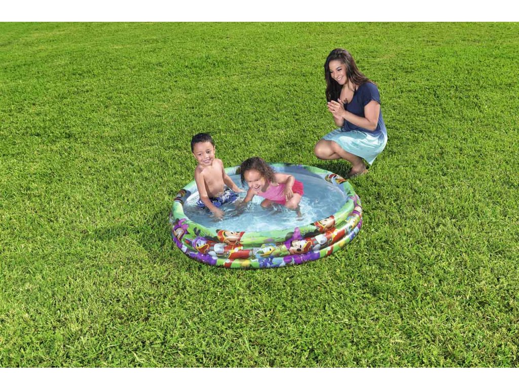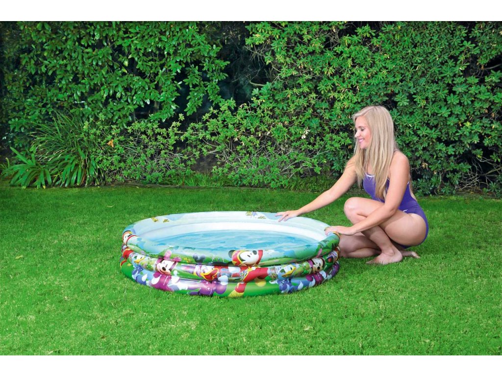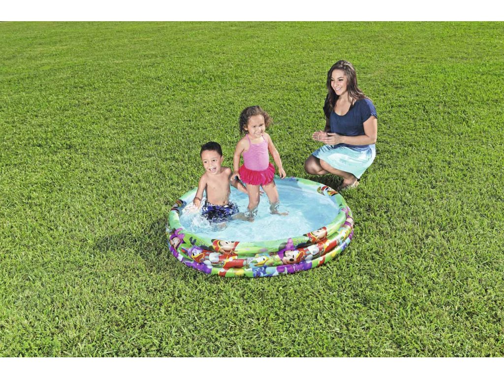 Dětský nafukovací bazének Bestway, který se hodí na každou zahrádku. Tento nádherný menší bazének je zdoben oblíbenými postavičkami od Walta Disney. Bazének má 3 vzduchové komory a bezpečnostní ventily. Vyrobeno z kvalitního a odolného vinylu. Rozměr: 122 x 25 cm. Max. kapacita vody: 140 l. Obsahuje: 1 dětský bazének, 1 opravná sada. Používejte pouze pod dohledem dospělé osoby. Věk: 2+
