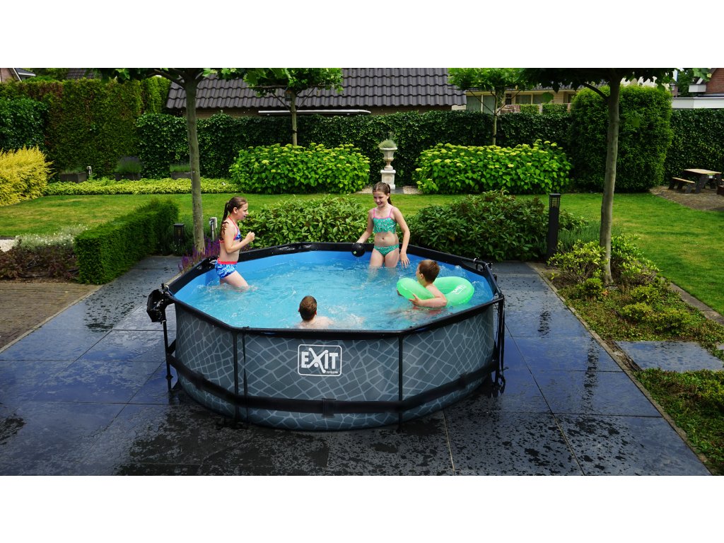 Moderní bazény od Holandské značky Exit se vyznačují robustním pevným rámem, který je ošetřen černou práškovou barvou.