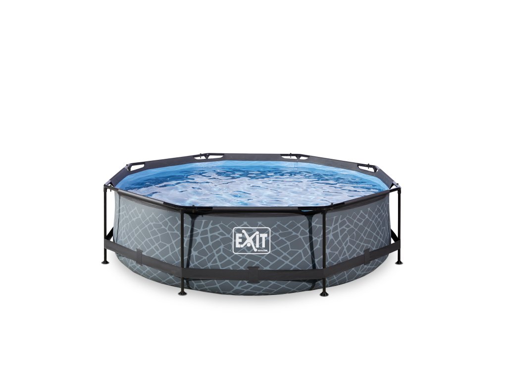 Kamenný, nebo dřevěný vzor bazénu s černou konstrukcí se hodí do každé zahrady. Vnitřní část bazénu je modrá. Pevnost bazénu zajišťují třívrstvé stěny z PVC a polyesteru. Filtrační čerpadlo udržuje vodu čerstvou a pohyblivou, aby se zabránilo znečištění. Kartušová filtrace je snadno namontovatelná na bazén a voda je filtrována filtry v kartušové filtraci. Součástí balení je jeden filtr.