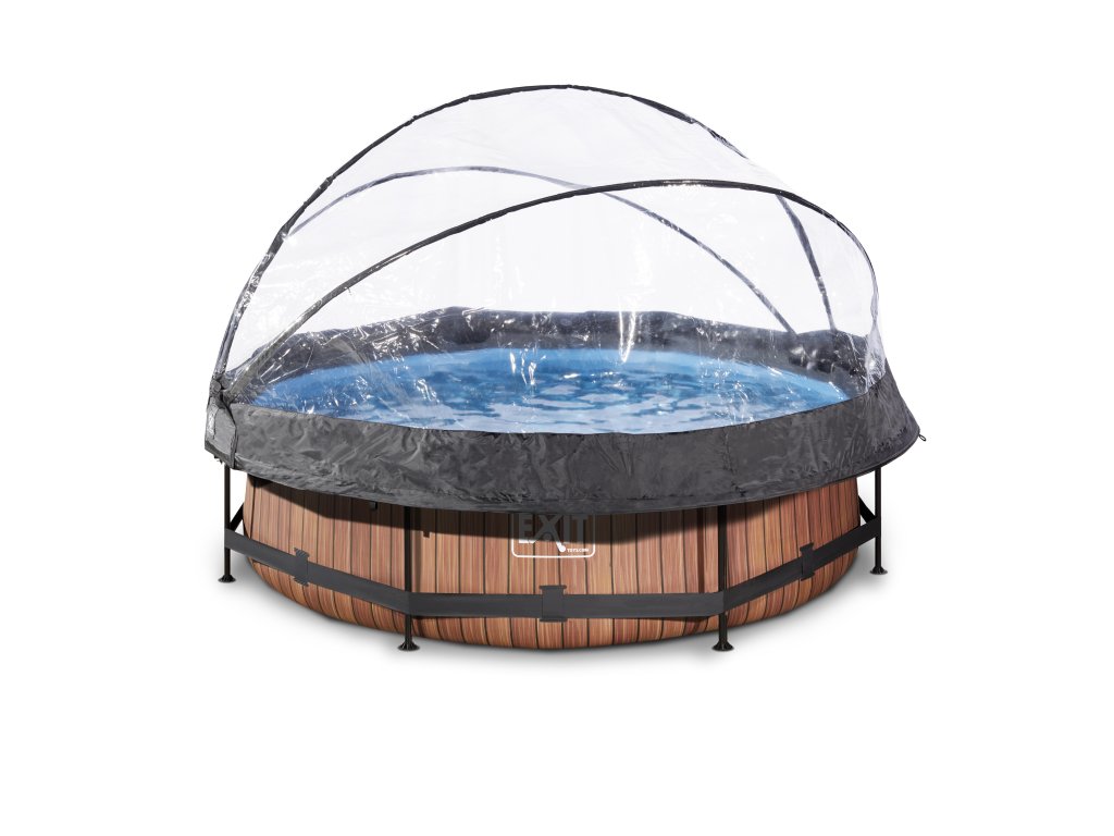Kamenný, nebo dřevěný vzor bazénu s černou konstrukcí se hodí do každé zahrady. Vnitřní část bazénu je modrá. Pevnost bazénu zajišťují třívrstvé stěny z PVC a polyesteru. Filtrační čerpadlo udržuje vodu čerstvou a pohyblivou, aby se zabránilo znečištění. Kartušová filtrace je snadno namontovatelná na bazén a voda je filtrována filtry v kartušové filtraci. Součástí balení je jeden filtr.
