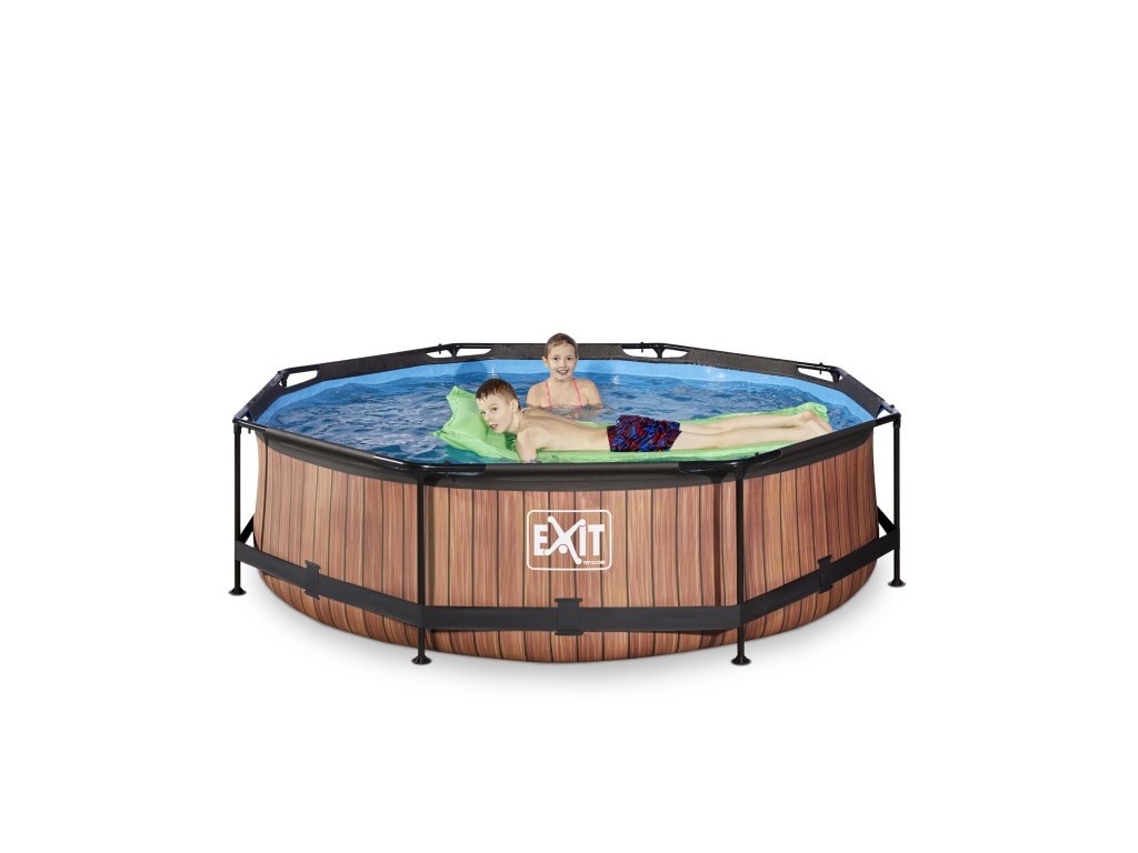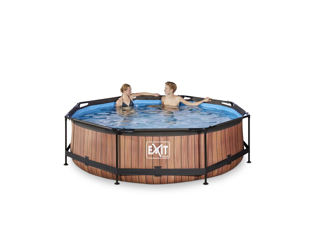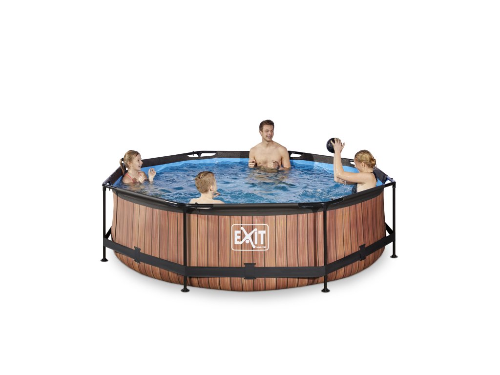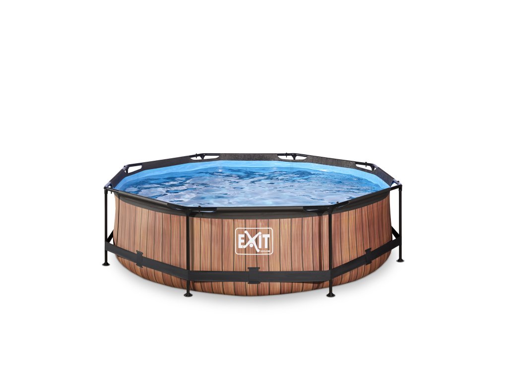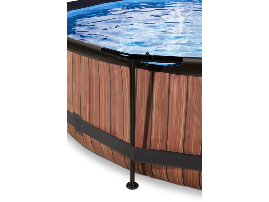 Kamenný, nebo dřevěný vzor bazénu s černou konstrukcí se hodí do každé zahrady. Vnitřní část bazénu je modrá. Pevnost bazénu zajišťují třívrstvé stěny z PVC a polyesteru. Filtrační čerpadlo udržuje vodu čerstvou a pohyblivou, aby se zabránilo znečištění. Kartušová filtrace je snadno namontovatelná na bazén a voda je filtrována filtry v kartušové filtraci. Součástí balení je jeden filtr.
