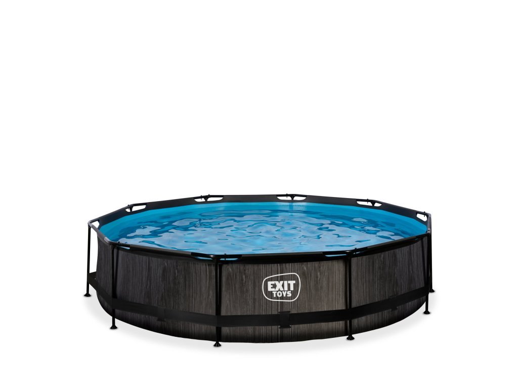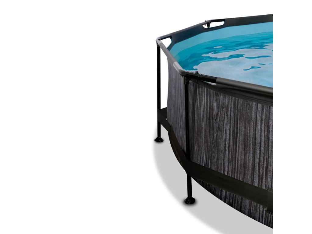 Kamenný, nebo dřevěný vzor bazénu s černou konstrukcí se hodí do každé zahrady. Vnitřní část bazénu je modrá. Pevnost bazénu zajišťují třívrstvé stěny z PVC a polyesteru. Filtrační čerpadlo udržuje vodu čerstvou a pohyblivou, aby se zabránilo znečištění. Kartušová filtrace je snadno namontovatelná na bazén a voda je filtrována filtry v kartušové filtraci. Součástí balení je jeden filtr.