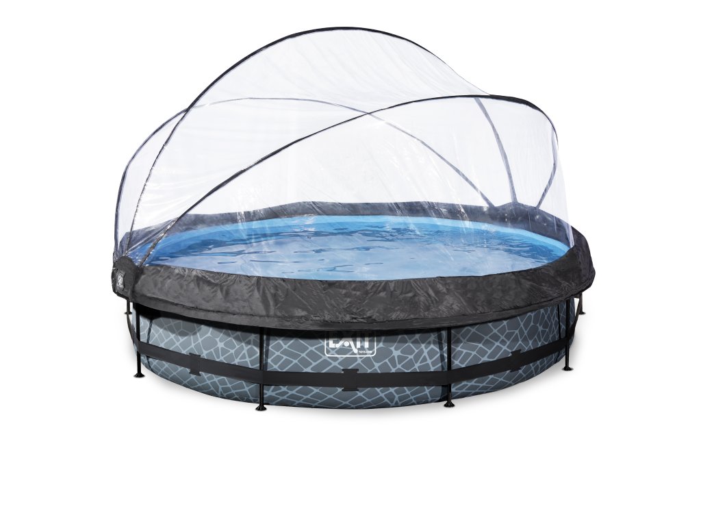 Kamenný, nebo dřevěný vzor bazénu s černou konstrukcí se hodí do každé zahrady. Vnitřní část bazénu je modrá. Pevnost bazénu zajišťují třívrstvé stěny z PVC a polyesteru. Filtrační čerpadlo udržuje vodu čerstvou a pohyblivou, aby se zabránilo znečištění. Kartušová filtrace je snadno namontovatelná na bazén a voda je filtrována filtry v kartušové filtraci. Součástí balení je jeden filtr.