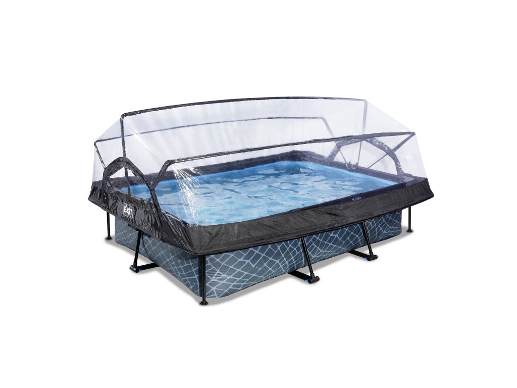 Kopule bazénu EXIT je multifunkční kryt pro váš bazén. Kopule je vhodná pro obdélníkové EXIT bazény o rozměrech 300 x 200 centimetrů a pro mnoho dalších rámových bazénů se stejnými rozměry.