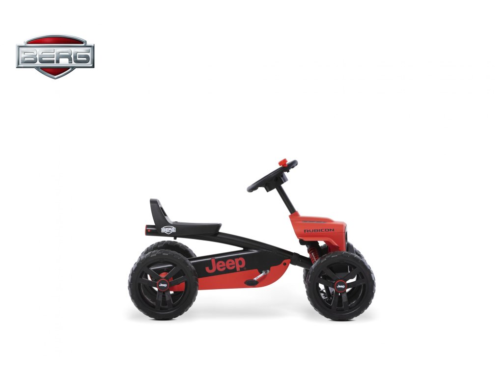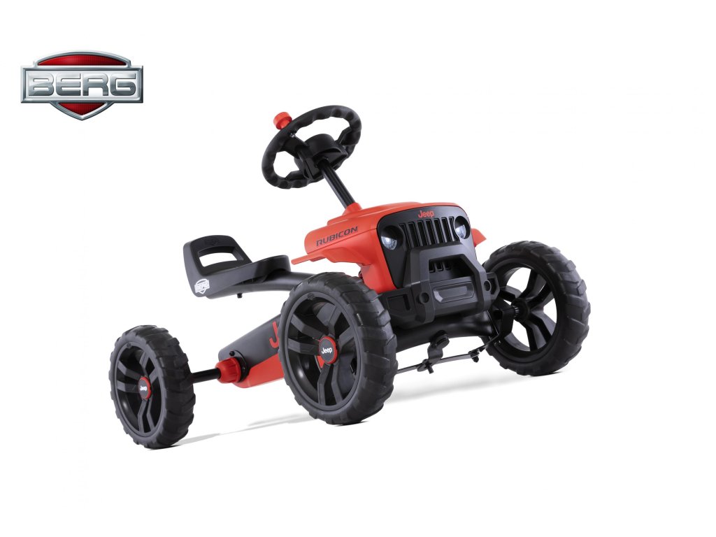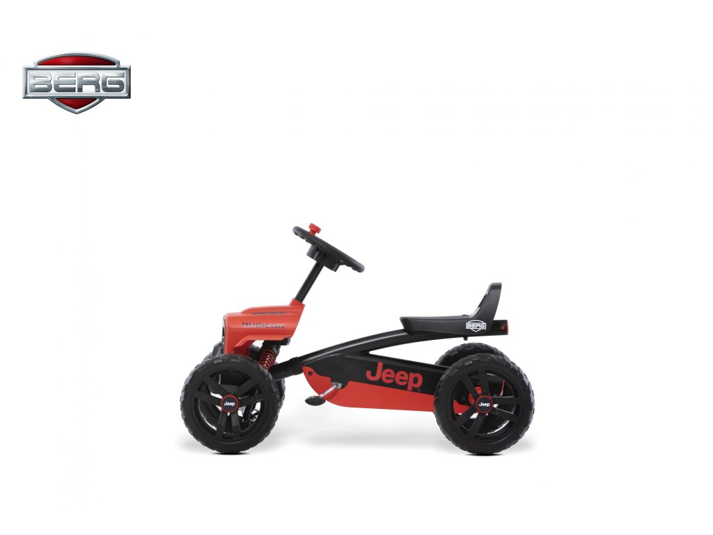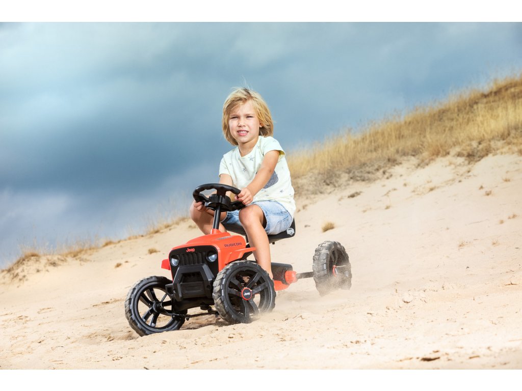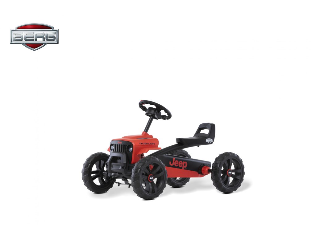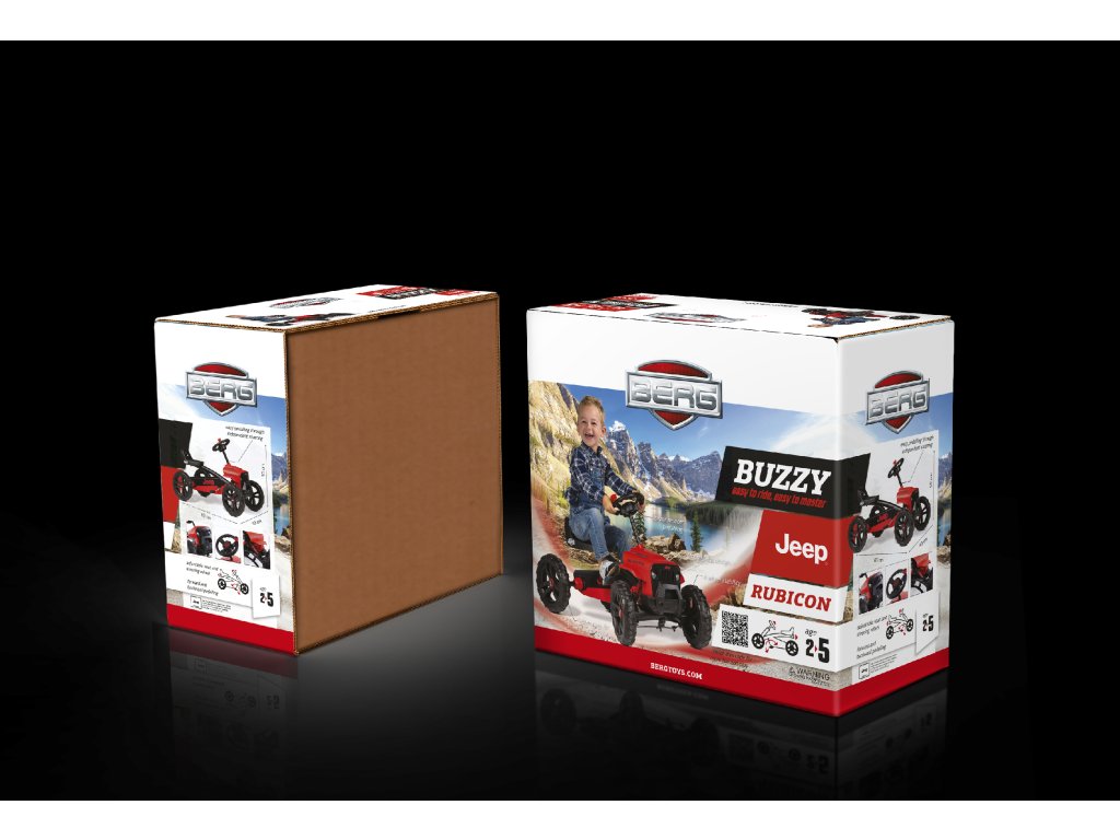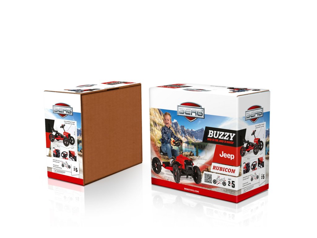Nechte své dítě snít, jezdit a objevovat v opravdovém Jeepu! V BERG Buzzy - Jeepu Rubicon zažijete skutečný off-roadový pocit. Krásné červeno-černé provedení, kde červená barva je extrémně odolná vůči UV záření. Terénní pneumatiky, kulatý volat s červenou klikou. Oficiální design Jeepu. Děti se rychle a snadno naučí šlapat díky jedinečné ergonomii Jeepu. Volant a pedály mohou být ovládány nezávisle na sobě. Čtyři tichá kola a otočná náprava udrží Jeep pevně a bezpečně na zemi. Super pružné a lehké šlapání díky kuličkovým ložiskům. Roste s dětmi díky nastavitelnému volantu a posuvnému sedadlu (výška 32 cm). Jízda je možná dopředu i dozadu. Věk: 2+. Váha: 7,5 kg.