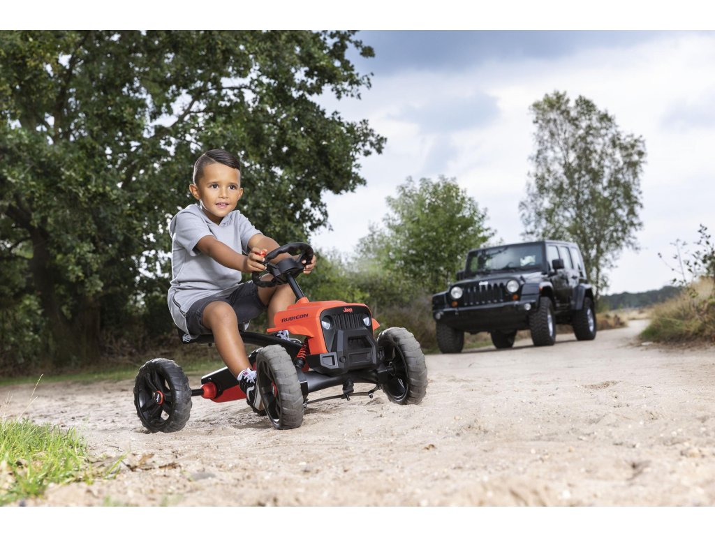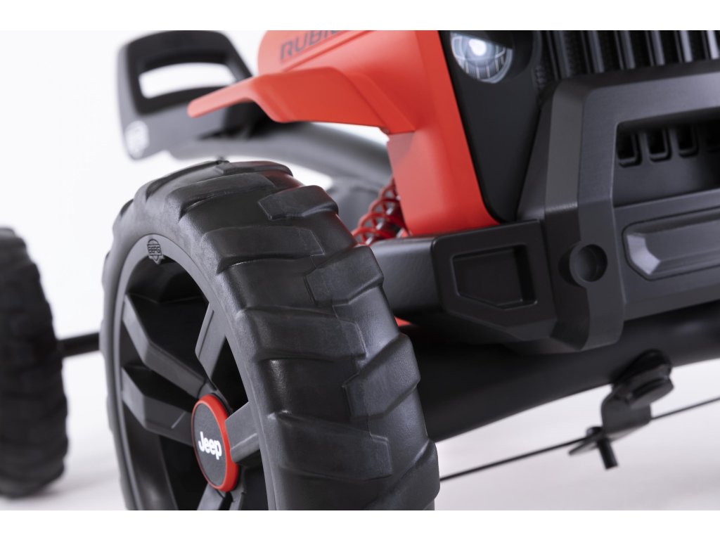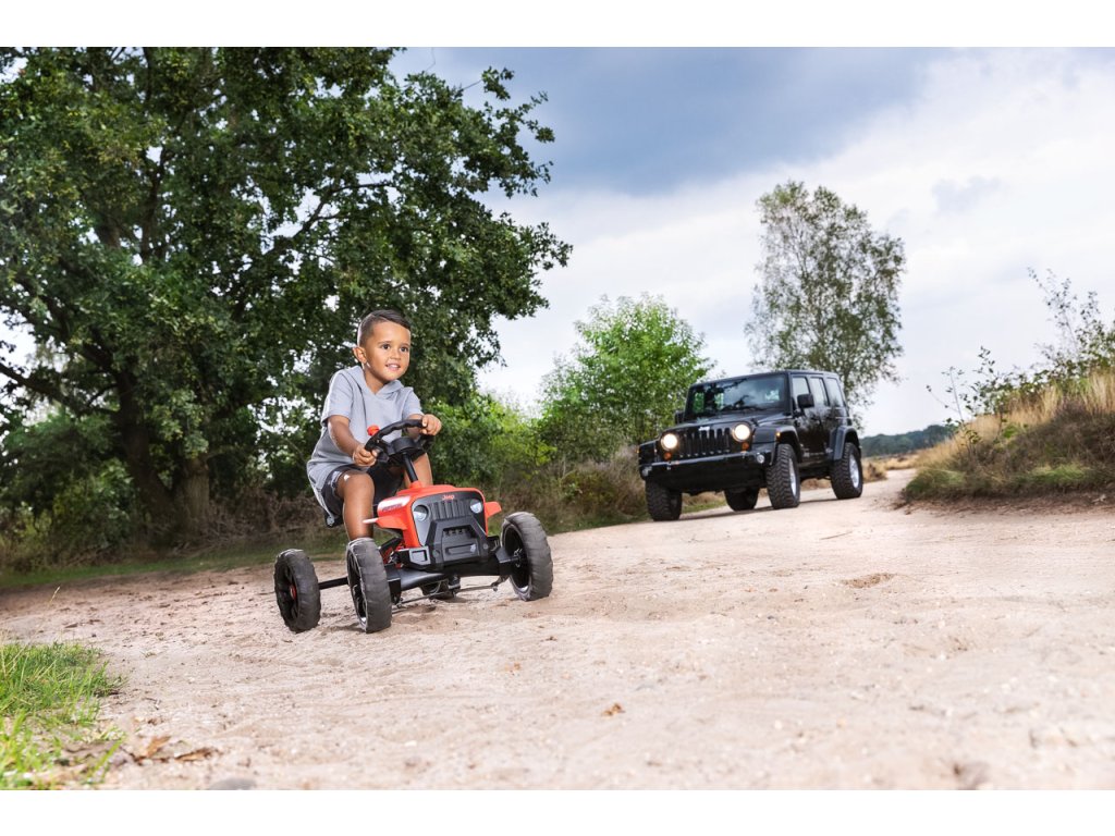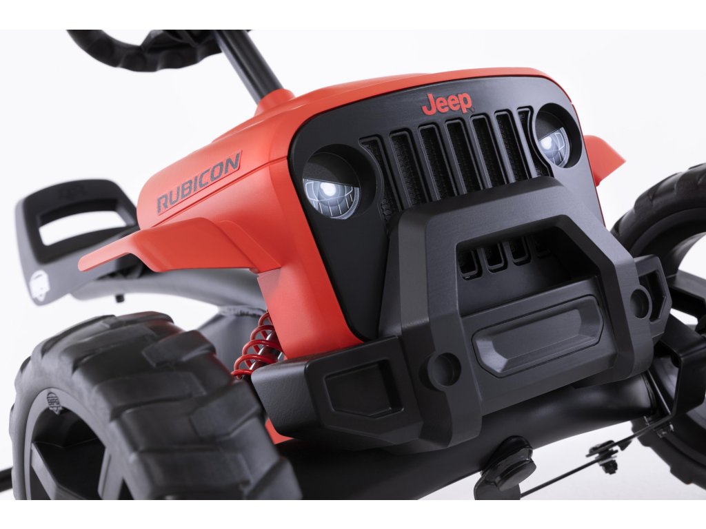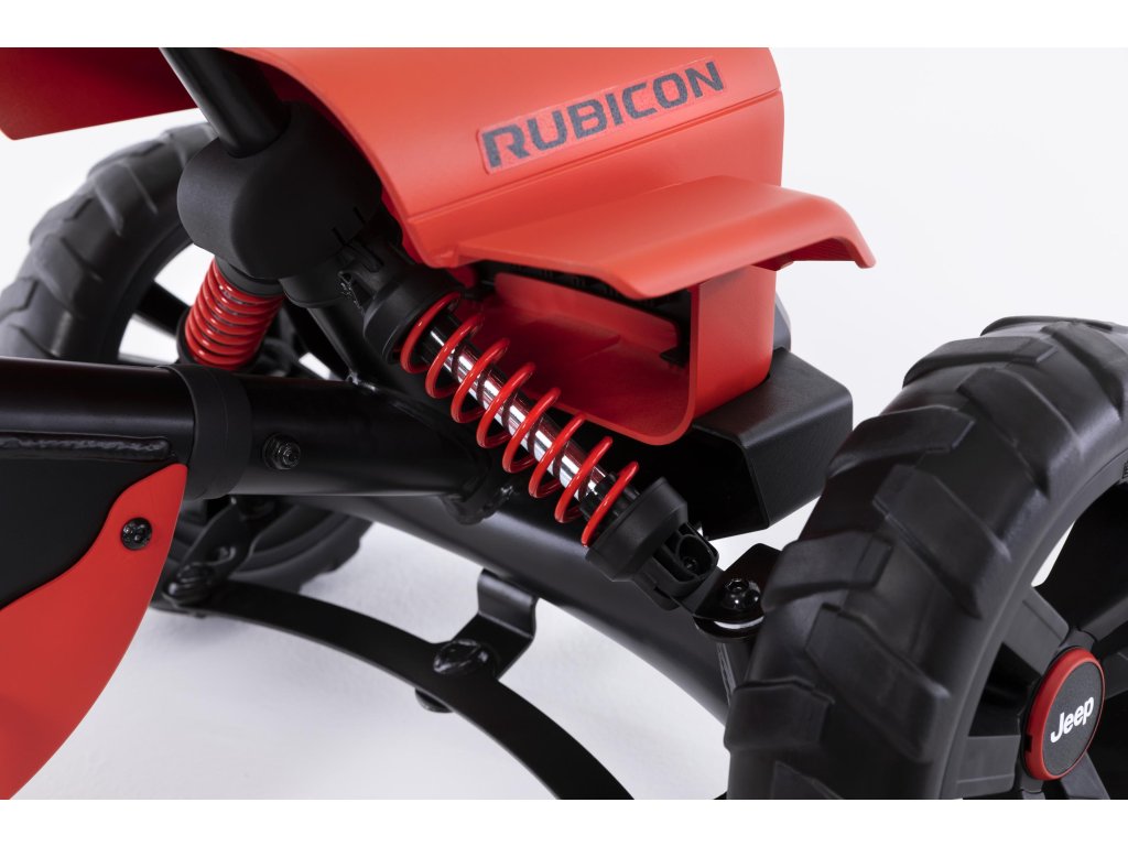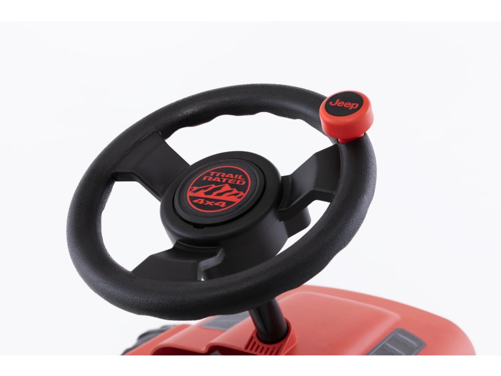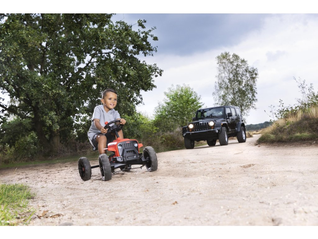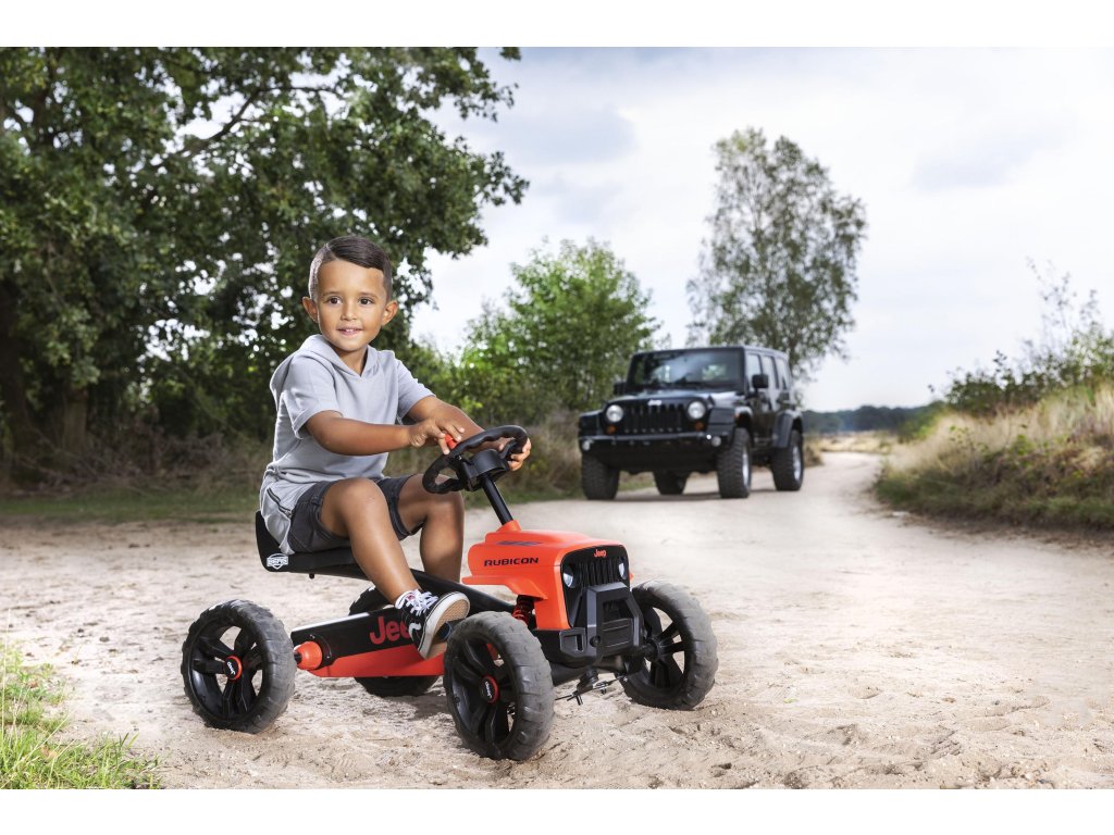 Nechte své dítě snít, jezdit a objevovat v opravdovém Jeepu! V BERG Buzzy - Jeepu Rubicon zažijete skutečný off-roadový pocit. Krásné červeno-černé provedení, kde červená barva je extrémně odolná vůči UV záření. Terénní pneumatiky, kulatý volat s červenou klikou. Oficiální design Jeepu. Děti se rychle a snadno naučí šlapat díky jedinečné ergonomii Jeepu. Volant a pedály mohou být ovládány nezávisle na sobě. Čtyři tichá kola a otočná náprava udrží Jeep pevně a bezpečně na zemi. Super pružné a lehké šlapání díky kuličkovým ložiskům. Roste s dětmi díky nastavitelnému volantu a posuvnému sedadlu (výška 32 cm). Jízda je možná dopředu i dozadu. Věk: 2+. Váha: 7,5 kg.