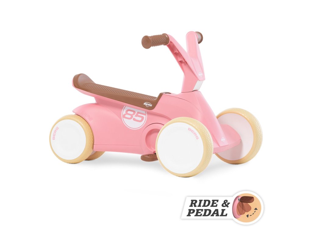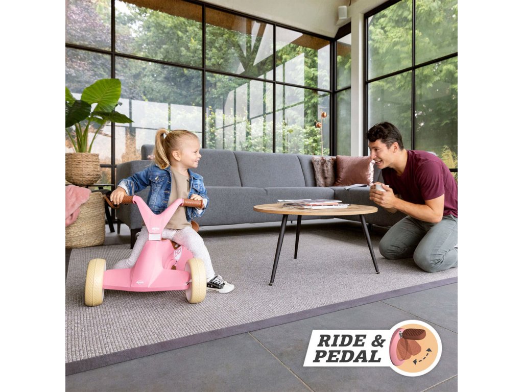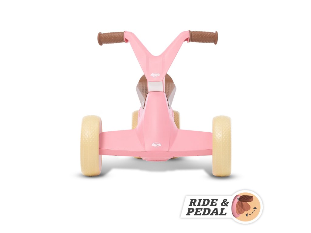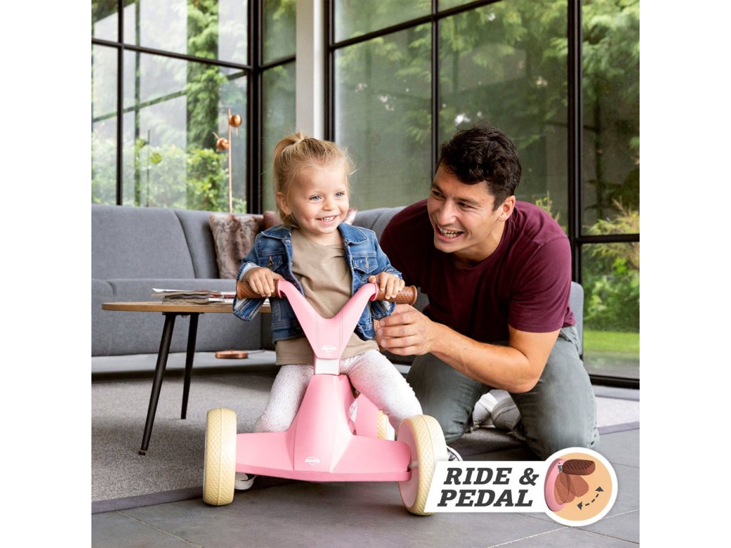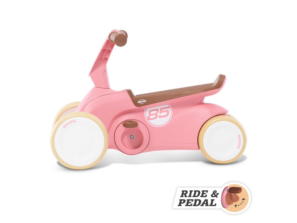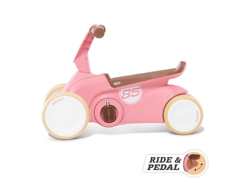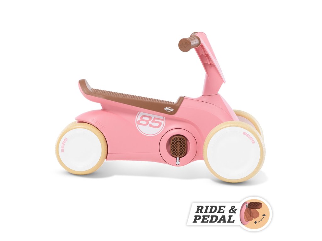 Jízda na BERG GO Retro 2v1 je díky ergonomickému designu vždy bezpečná. Sedadlo je vymyšleno tak, že se menší i větší děti, mohou vždy pohodlně usadit, aniž by jim nohy dotýkaly volantu. Tvar sedadla zabraňuje sklouznutí dítěte z odrážedla. Díky čtyřem tichým pneumatikám EVA zůstává odstrkovalo/šlapadlo vždy pevně na zemi. Jakmile si dítě osvojí jízdu na odrážedle a naučí se stabilitě, může se začít pomalu učit šlapat pomocí sklopných pedálů. Poutavý retro vzhled v barevné kombinaci růžové a hnědé upoutá na první pohled. BERG GO Retro odrážedlo/šlapadlo je tou nejlepší volbou, pomáhá při rozvoji vašeho dítěte. Vhodné pro děti od 70 - 100 cm. Maximální nosnost: 20 kg. Hmotnost: 3,85 kg. Odstrkovalo/Šlapadlo vj vhodné pro děti od 10 měsíců do 2,5 let. Video: https://www.youtube.com/watch?v=sl4xZYXfFB0