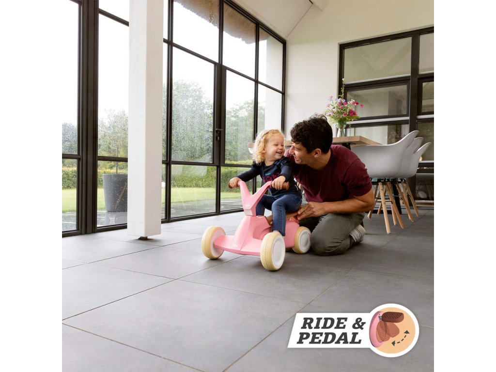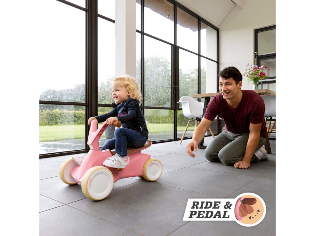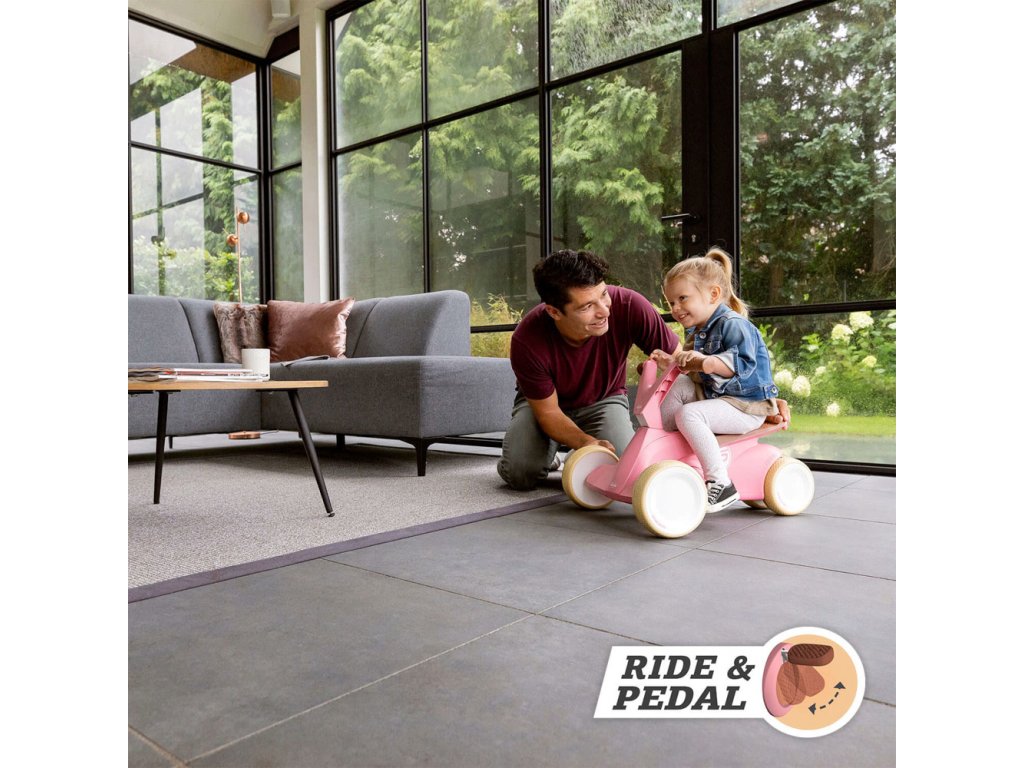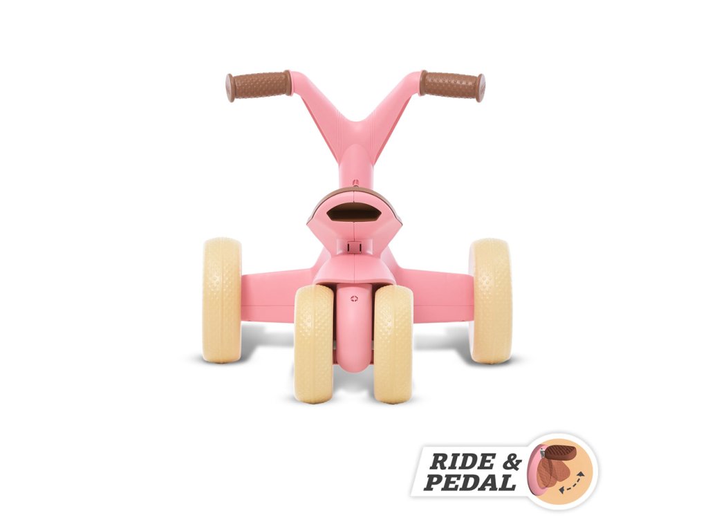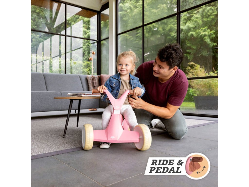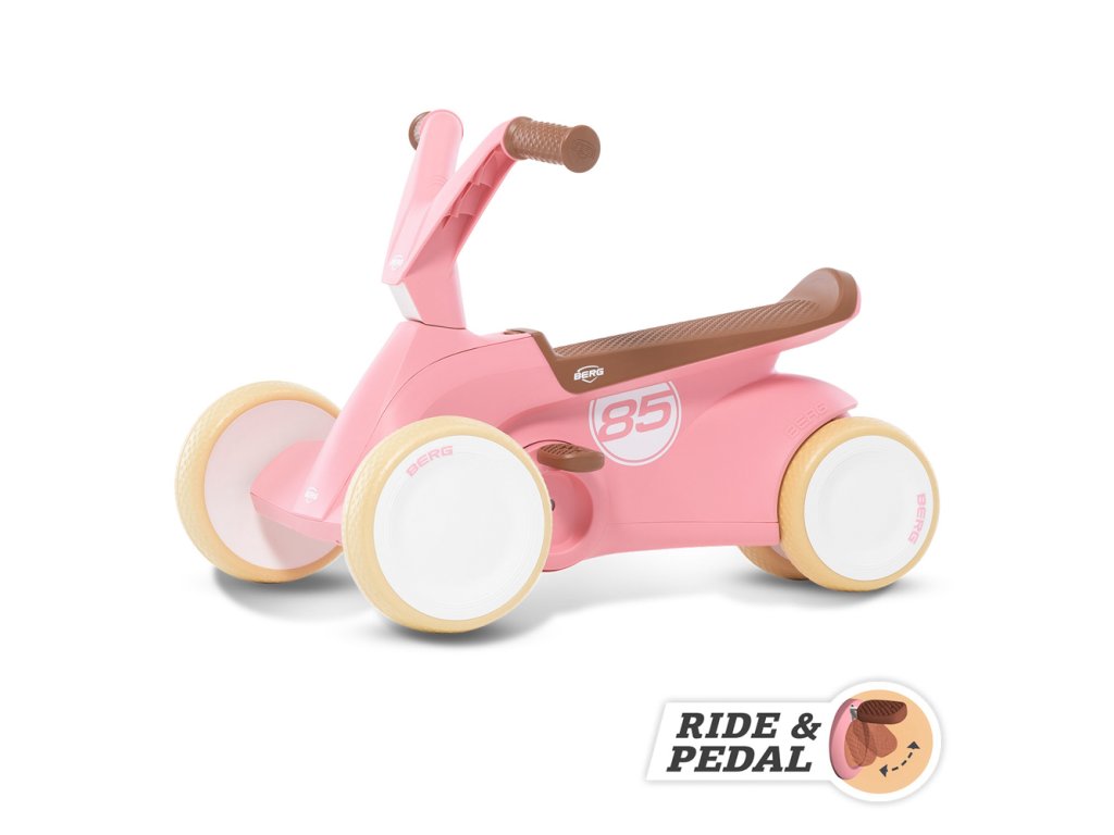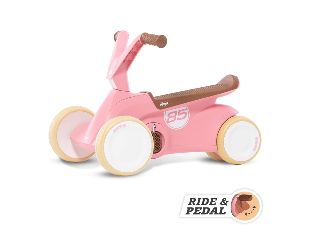 Jízda na BERG GO Retro 2v1 je díky ergonomickému designu vždy bezpečná. Sedadlo je vymyšleno tak, že se menší i větší děti, mohou vždy pohodlně usadit, aniž by jim nohy dotýkaly volantu. Tvar sedadla zabraňuje sklouznutí dítěte z odrážedla. Díky čtyřem tichým pneumatikám EVA zůstává odstrkovalo/šlapadlo vždy pevně na zemi. Jakmile si dítě osvojí jízdu na odrážedle a naučí se stabilitě, může se začít pomalu učit šlapat pomocí sklopných pedálů. Poutavý retro vzhled v barevné kombinaci růžové a hnědé upoutá na první pohled. BERG GO Retro odrážedlo/šlapadlo je tou nejlepší volbou, pomáhá při rozvoji vašeho dítěte. Vhodné pro děti od 70 - 100 cm. Maximální nosnost: 20 kg. Hmotnost: 3,85 kg. Odstrkovalo/Šlapadlo vj vhodné pro děti od 10 měsíců do 2,5 let. Video: https://www.youtube.com/watch?v=sl4xZYXfFB0