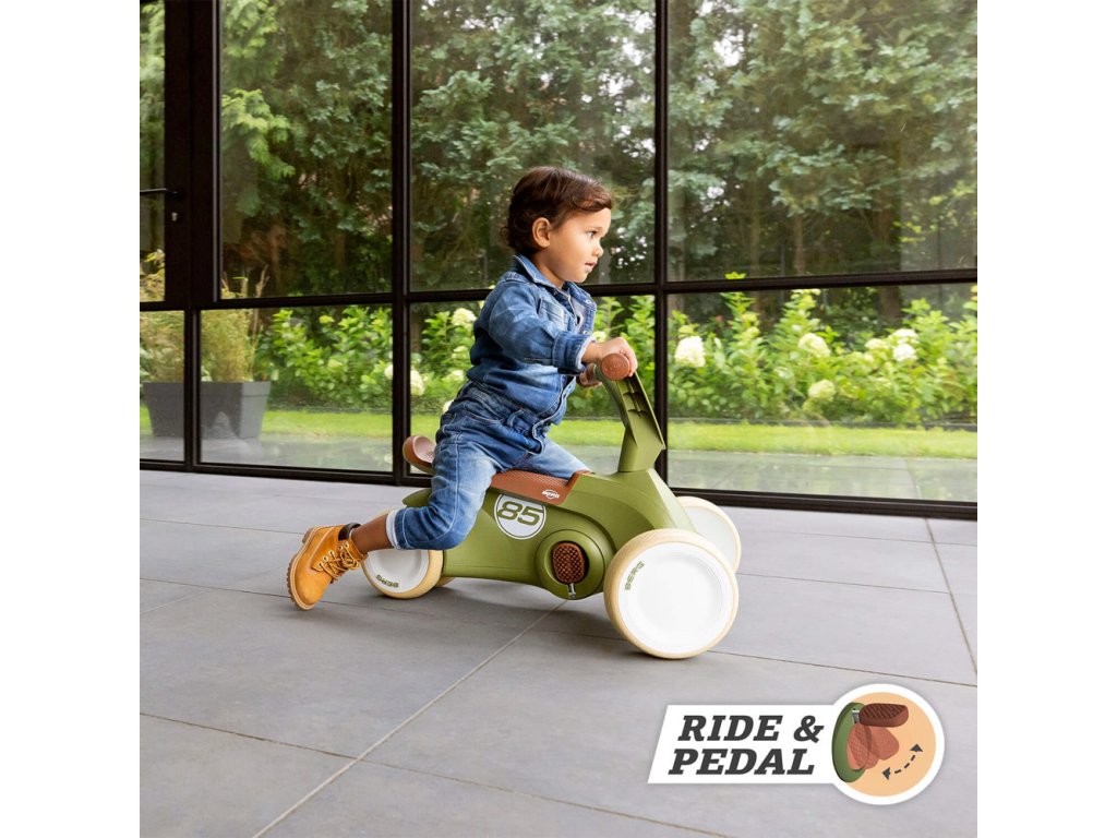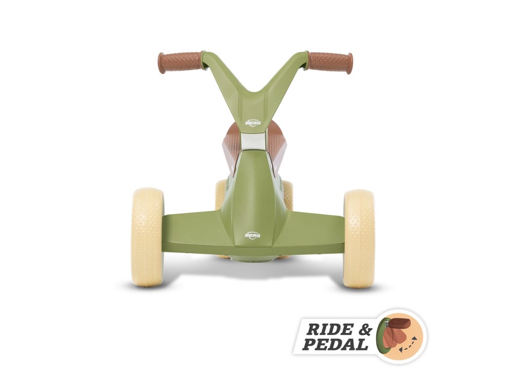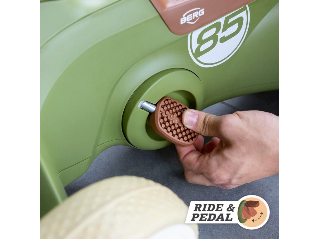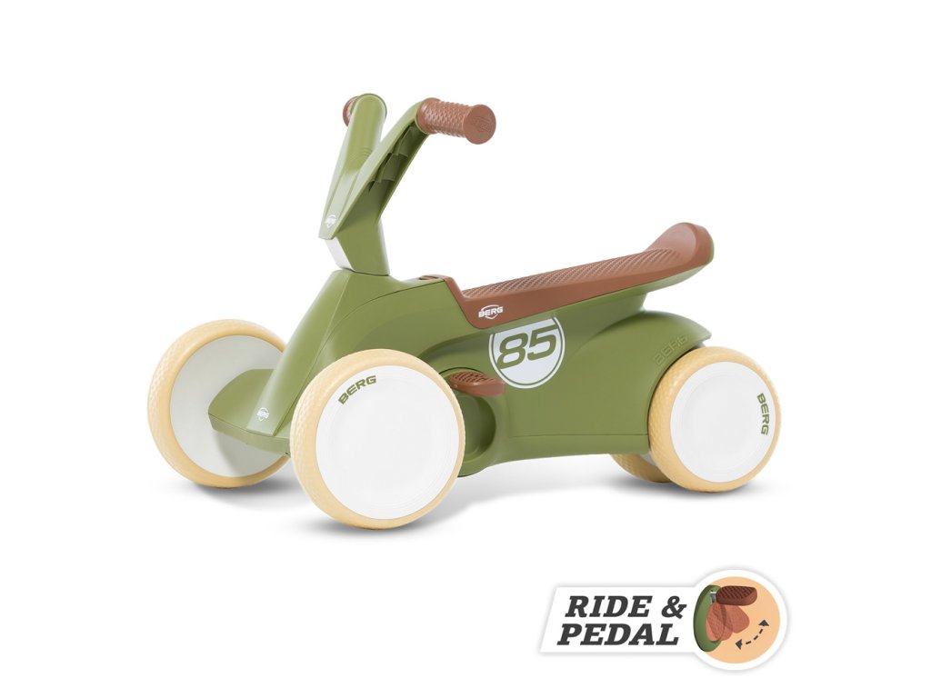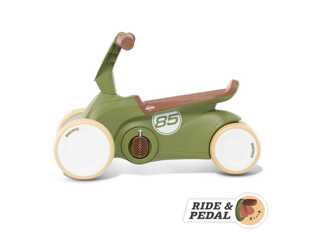 Jízda na BERG GO Retro 2v1 je díky ergonomickému designu vždy bezpečná. Sedadlo je vymyšleno tak, že se menší i větší děti, mohou vždy pohodlně usadit, aniž by jim nohy dotýkaly volantu. Tvar sedadla zabraňuje sklouznutí dítěte z odrážedla. Díky čtyřem tichým pneumatikám EVA zůstává odstrkovalo/šlapadlo vždy pevně na zemi. Jakmile si dítě osvojí jízdu na odrážedle a naučí se stabilitě, může se začít pomalu učit šlapat pomocí sklopných pedálů. Poutavý retro vzhled v barevné kombinaci zelené a hnědé upoutá na první pohled. BERG GO Retro odrážedlo/šlapadlo je tou nejlepší volbou, pomáhá při rozvoji vašeho dítěte. Barevné provedení je vhodné pro dívky i chlapce. Vhodné pro děti od 70 - 100 cm. Maximální nosnost: 20 kg. Hmotnost: 3,85 kg. Odstrkovalo/Šlapadlo ve vhodné pro děti od 10 měsíců do 2,5 let. Video: https://www.youtube.com/watch?v=sl4xZYXfFB0
