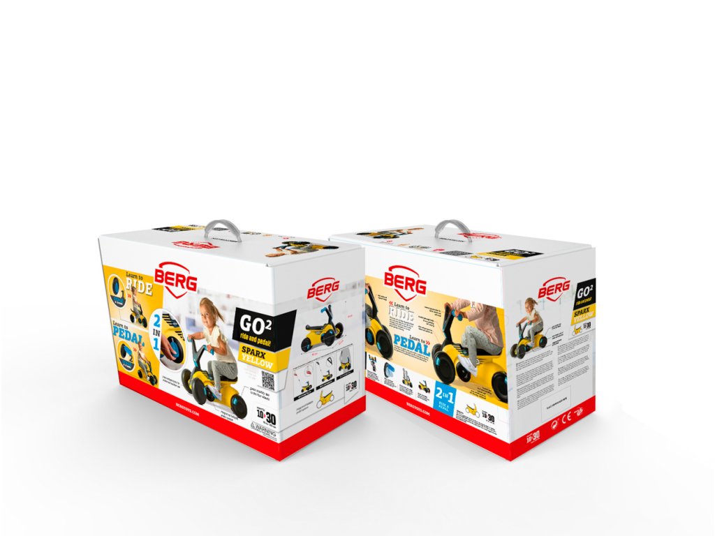 BERG GO SparX - odrážedlo a šlapadlo v nádherném žluto-modro-černém provedení je vhodné pro malé dívky i chlapce od 10 měsíců. BERG GO SparX roste s dětmi. Jakmile si dítě osvojí jízdu na odrážedle a naučí se stabilitě, může se začít pomalu učit šlapat pomocí sklopných pedálů. Super pružné a lehké šlapání díky kuličkovým ložiskům. Odrážedlo je stabilní a bezpečné díky 4 kolům BERG GO2 s tichými pneumatikami, která drží odrážedlo pevně na zemi. Jízda je možná dopředu i dozadu. Řídítka a pedály mohou být ovládány nezávisle na sobě. Design odrážedla je přizpůsoben věku dítěte, není potřeba nastavovat řídítka ani sedadlo. Tvar sedadla zabraňuje sklouznutí dítěte z odrážedla. BERG GO odrážedlo je tou nejlepší volbou, pomáhá při rozvoji vašeho dítěte. Věk: 10m-30m. Doporučená výška dítěte: 70-100 cm. Rozměr: 65 x 45 x 44 cm. Váha: 3,85 kg. Max. nosnost: 20 kg. Pneumatiky: EVA. Video: https://www.youtube.com/watch?v=4YVV7gaDx7o