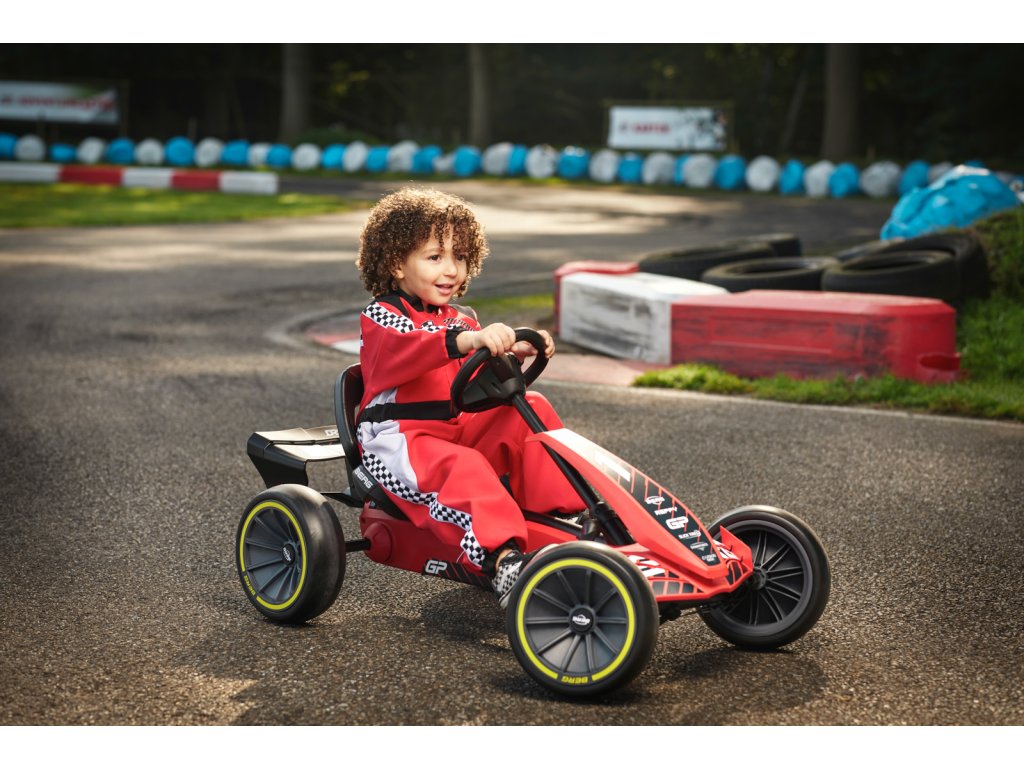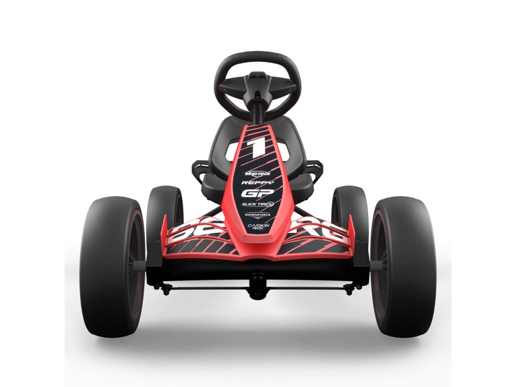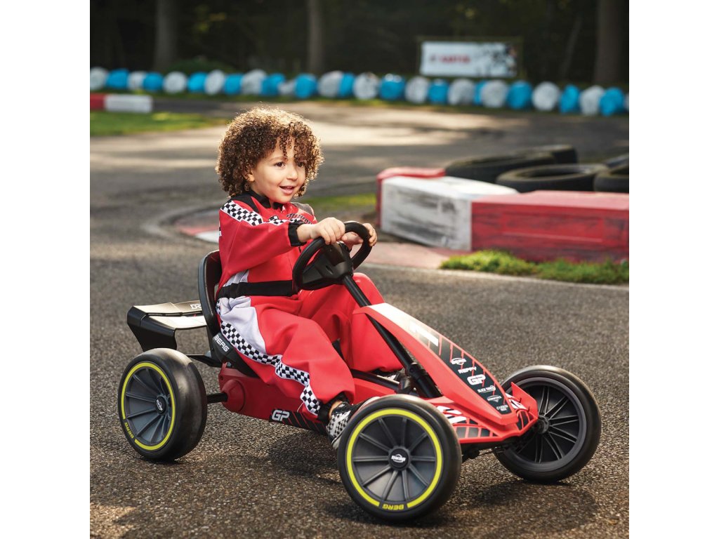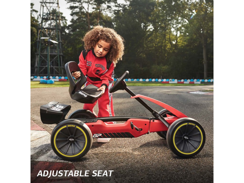 BERG Reppy GP je úžasná šlapací kára, se kterou mohou vaše děti prozkoumávat okolí opravdu dlouhé hodiny. BERG Reppy GP je vyroben z pevné oceli, stabilitu v terénu zaručuje výkyvná náprava, tichý chod zajišťují kuličková ložiska. Pneumatiky jsou vyrobeny z měkké EVA gumy bez duše, takže nehrozí jejich propíchnutí. Pro pohodlí vašich dětí nechybí nastavitelná výška volantu a čtyři polohy pro nastavení sedačky. Rozměry výrobku: 98×59×58 cm. Nosnost: 40 Kg