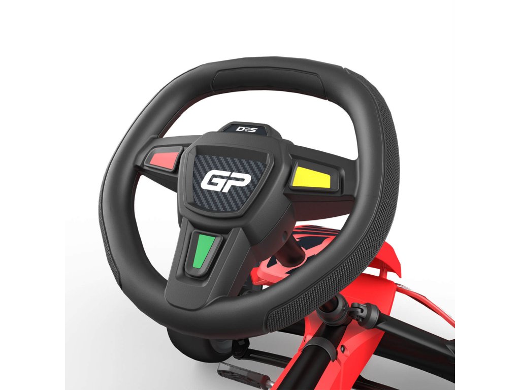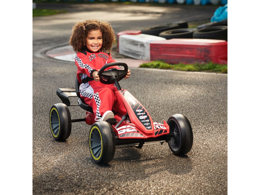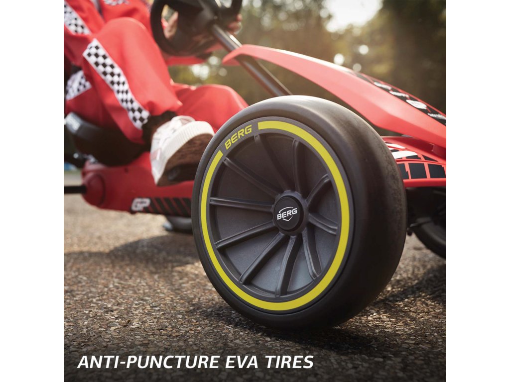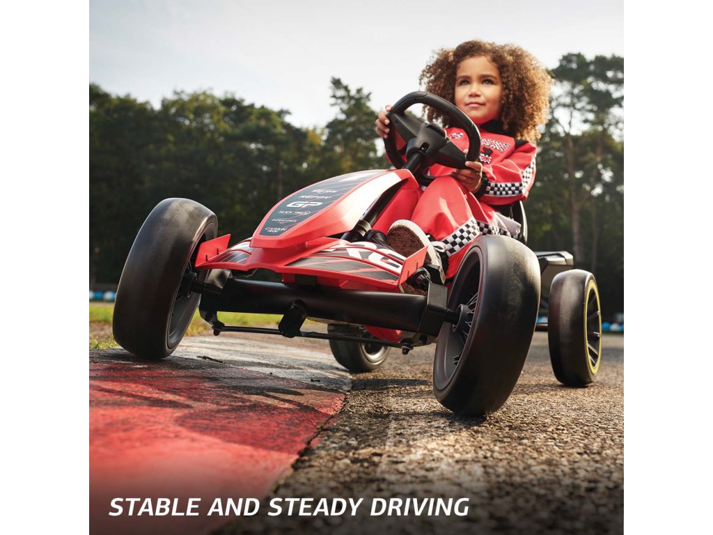 BERG Reppy GP je úžasná šlapací kára, se kterou mohou vaše děti prozkoumávat okolí opravdu dlouhé hodiny. BERG Reppy GP je vyroben z pevné oceli, stabilitu v terénu zaručuje výkyvná náprava, tichý chod zajišťují kuličková ložiska. Pneumatiky jsou vyrobeny z měkké EVA gumy bez duše, takže nehrozí jejich propíchnutí. Pro pohodlí vašich dětí nechybí nastavitelná výška volantu a čtyři polohy pro nastavení sedačky. Rozměry výrobku: 98×59×58 cm. Nosnost: 40 Kg