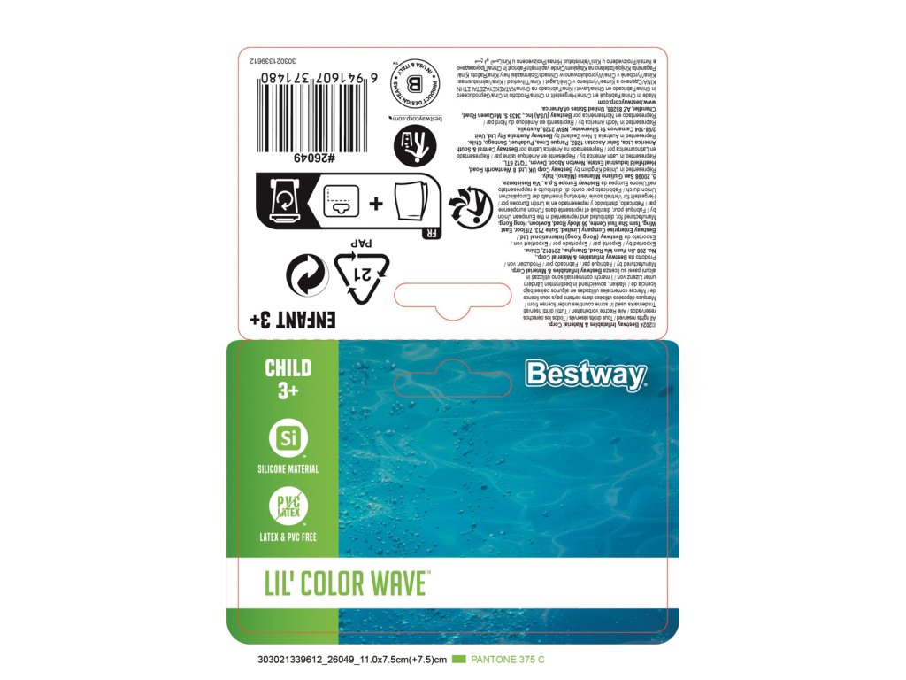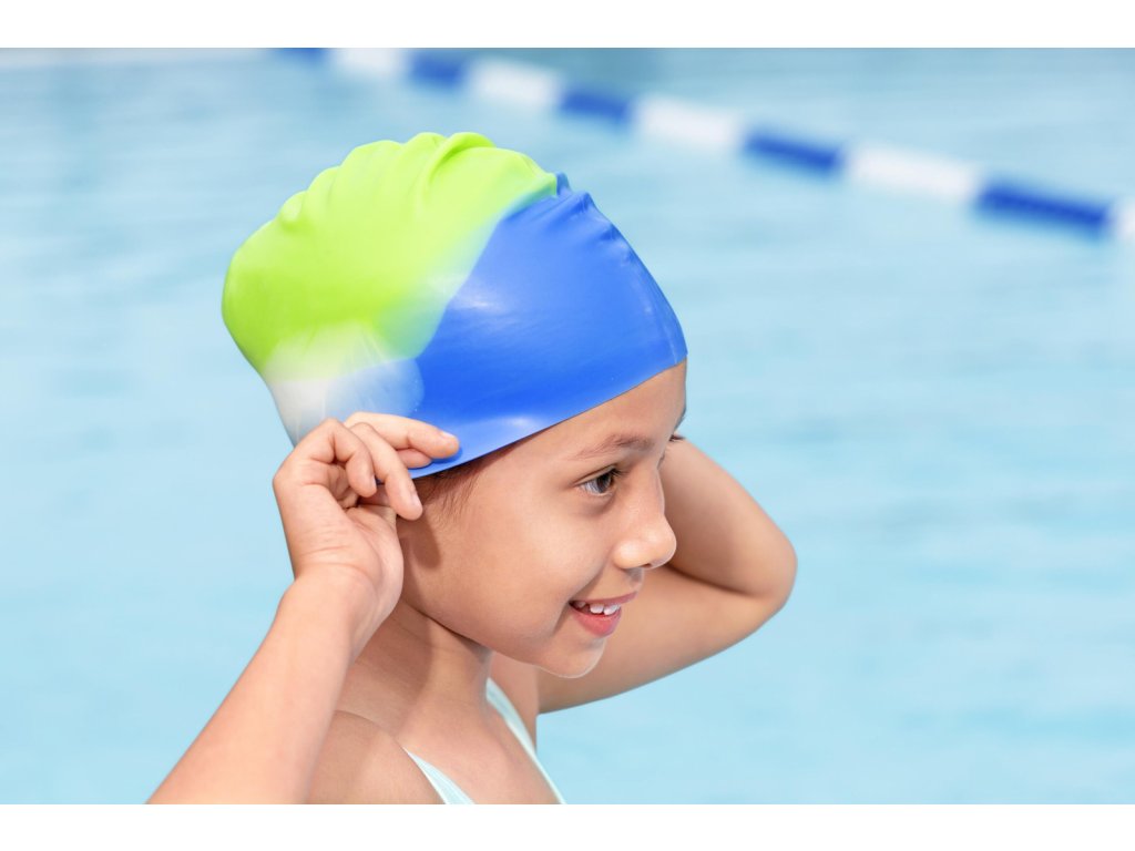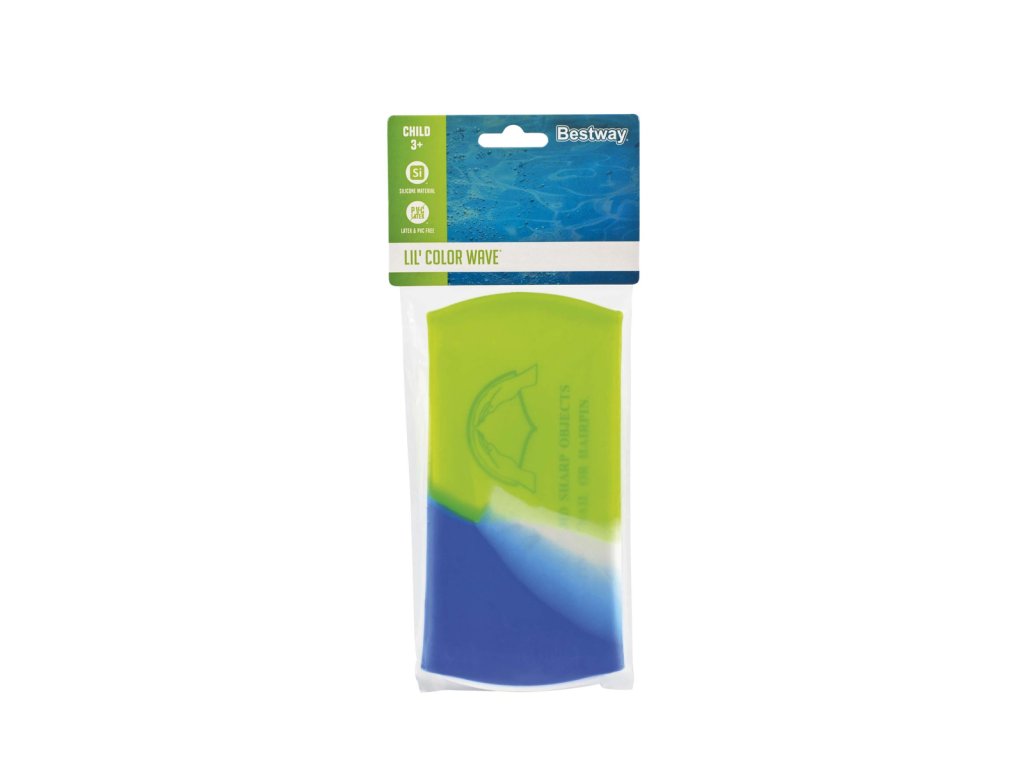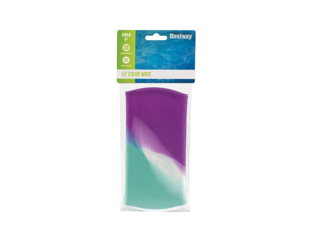 Dětská plavecká čepice Bestway® Lil'Color Wave. Tato silikonová plavecká čepice je speciálně navržena pro malé plavce. Je vyrobena z pružného materiálu. Čepice je šetrná k vlasům. Barevný a hravý vzhled jej činí atraktivním pro děti, navíc jsou ve vodě snadno vidět. 3 barevné varianty v kolekci. Assort je náhodný mix modelů. Výběr nelze ovlivnit. Rozměry produktu: 20 x 18 x 0,2 cm. Rozměry balení: 27 x 11 x 0,5 cm. Věk: 3+
