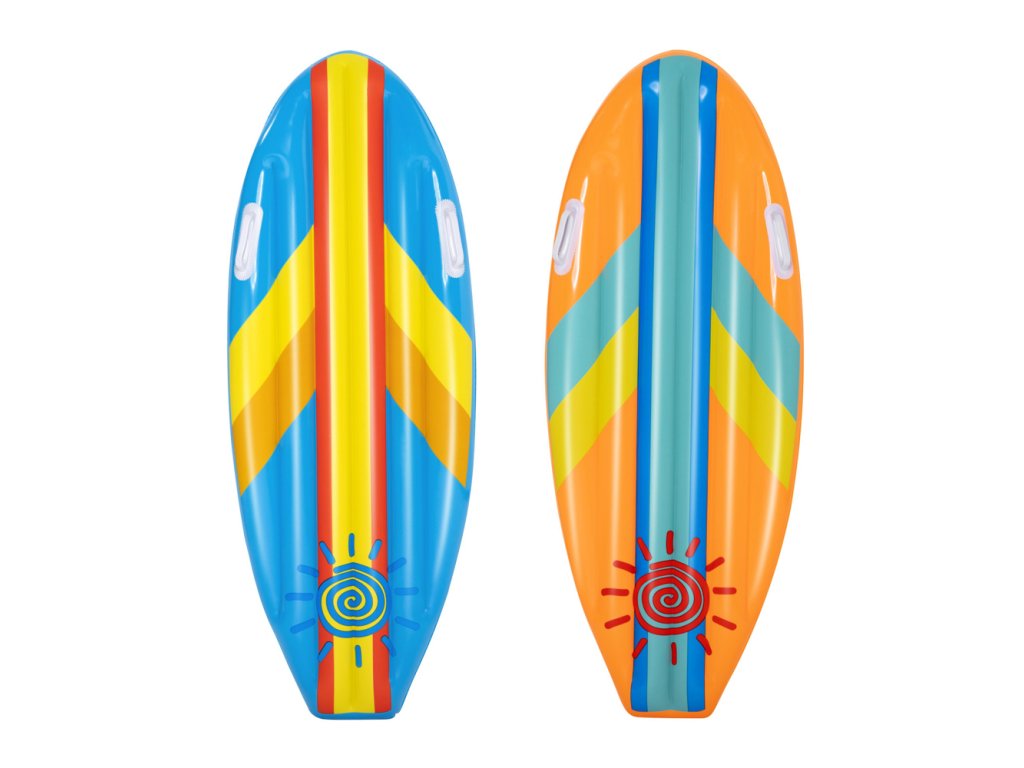 Nafukovací matrace Bestway ve tvaru surfu Sunny Rider je vhodným doplňkem nejen pro váš bazén, ale zábavu si s ním užijete i v rybníce nebo u moře. Bezpečnou a stabilní jízdu zajišťují robustní rukojeti a zpevněná středová část. Trendy barevný potisk v jasných barvách a sluneční grafikou (2 barevná provedení) si děti ihned zamilují. Snadné nafouknutí, vyfouknutí a složení. Rozměr surfu: 114 x 46 cm. Obsahuje: 1 nafukovací surf, 1 opravnou záplatu. Doporučený věk: 3-10 let. Používejte pouze pod dohledem dospělé osoby a ve vodě, kde dítě dosáhne na dno.