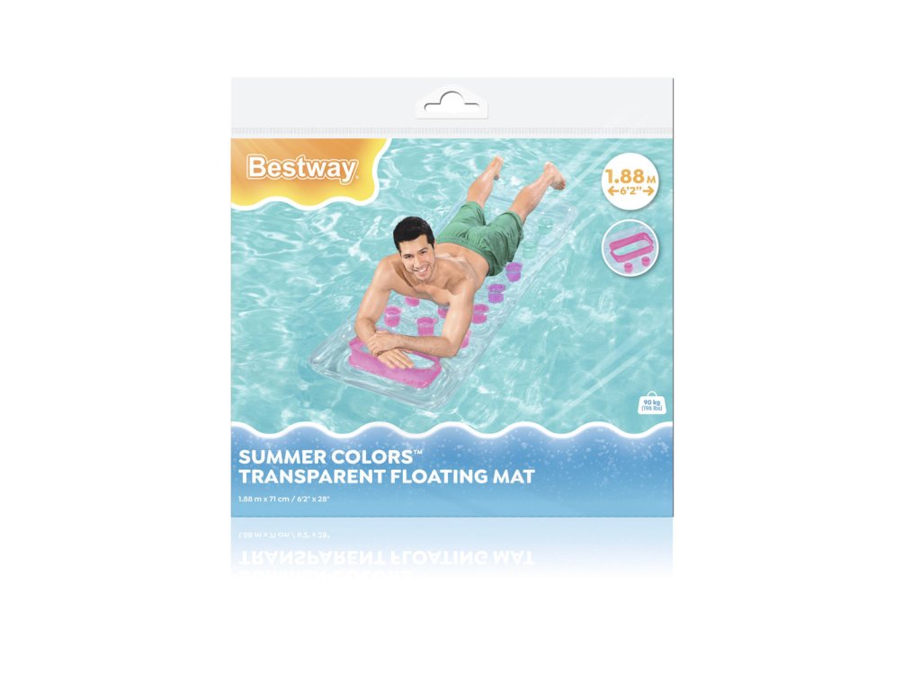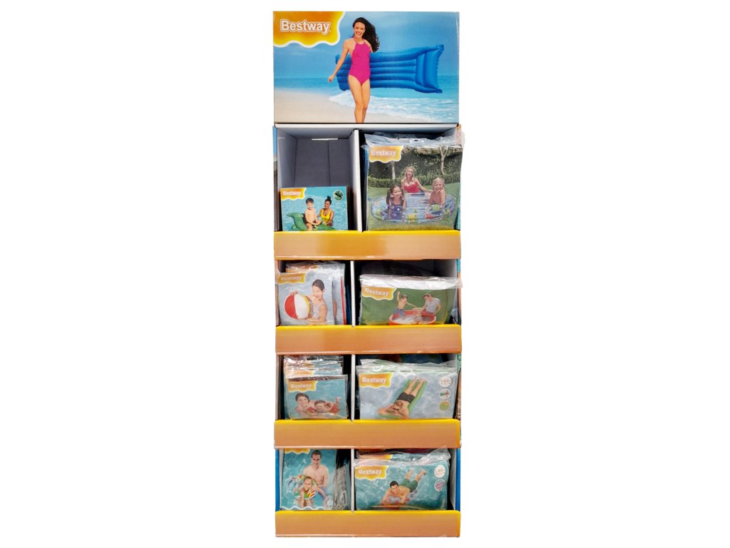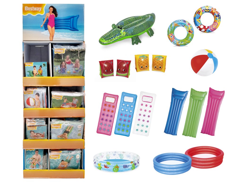 Velká sada produktů, která zpestří váš volný čas a zažijete s ní mnoho zábavy během slunečních dnů. Sada se skládá z 8 druhů oblíbených nafukovacích produktů od značky Bestway a celkem obsahuje 147 kusů. Sada obsahuje: 15 ks matrací v barvách zelená, růžová a modrá (rozměr 183x69 cm), 9 ks matrací s průzorem a prohlubněmi v barvách modrá, růžová a průhledná (rozměr 188x71 cm), 36 ks plážových míčů (rozměr 51 cm), 36 ks kruhů s designem ryby a včelky (rozměr 56 cm), 30 ks rukávků v designu jahoda a ananas (rozměr 23x15 cm), 5 ks krokodýlů (rozměr 152x71 cm), malé bazény pro děti 8 ks v barvě červená, modrá a zelená (průměr 122 cm a výška 25 cm) a 8 ks bazénků s motivem rybiček (rozměr 152x30 cm). Každý si najde to pravé pro sebe, vhodné jak na výlety k moři nebo na využití doma u bazénu. Vhodné pro děti i dospělé. Váha 55 kg. Rozměr balení: 55x152x34,5 cm. Věk 3+