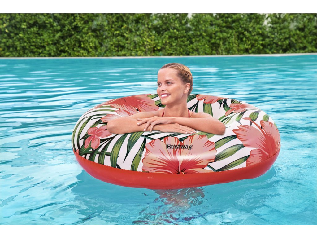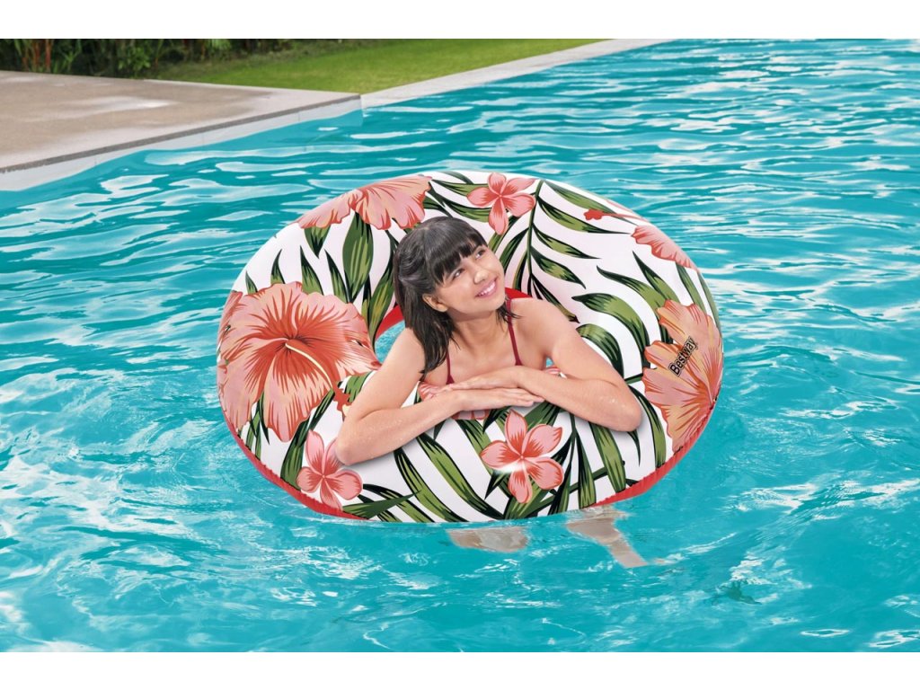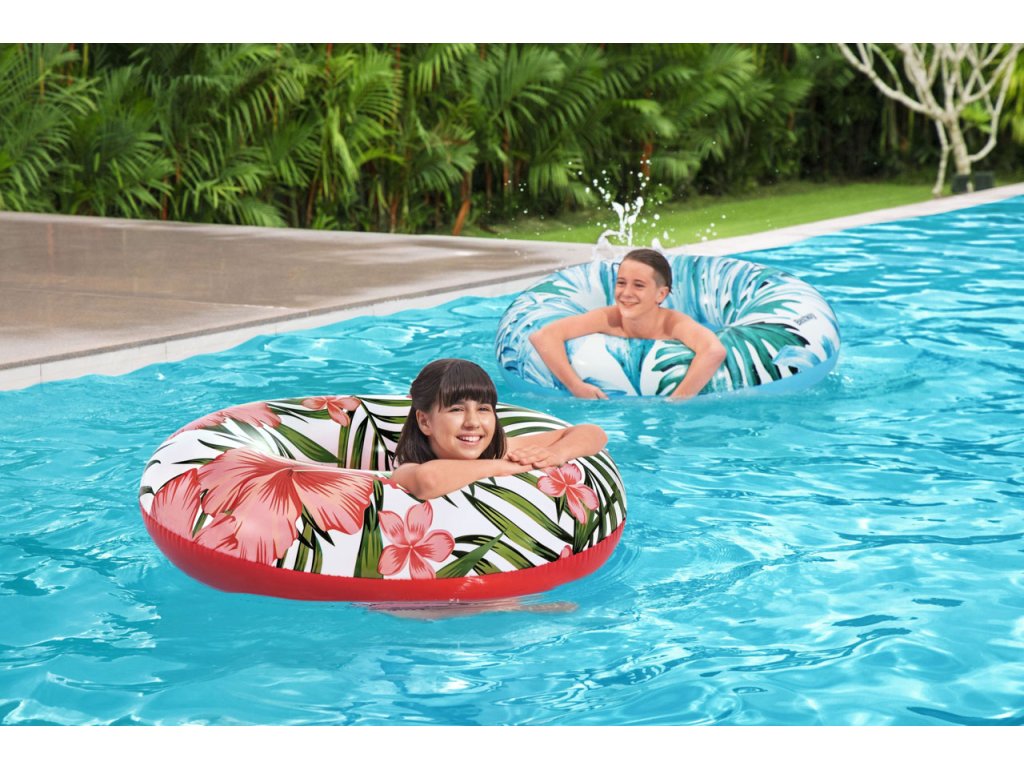 Užívej si relax a nech se unášet vlnami s nafukovacím kruhem se stylovým motivem palem.
