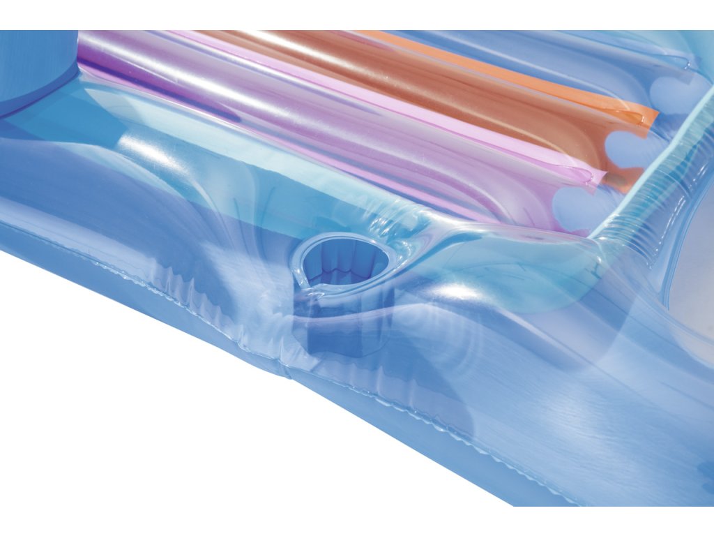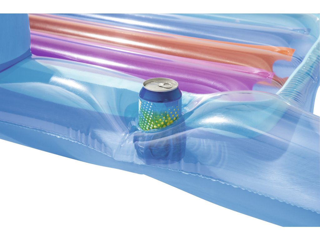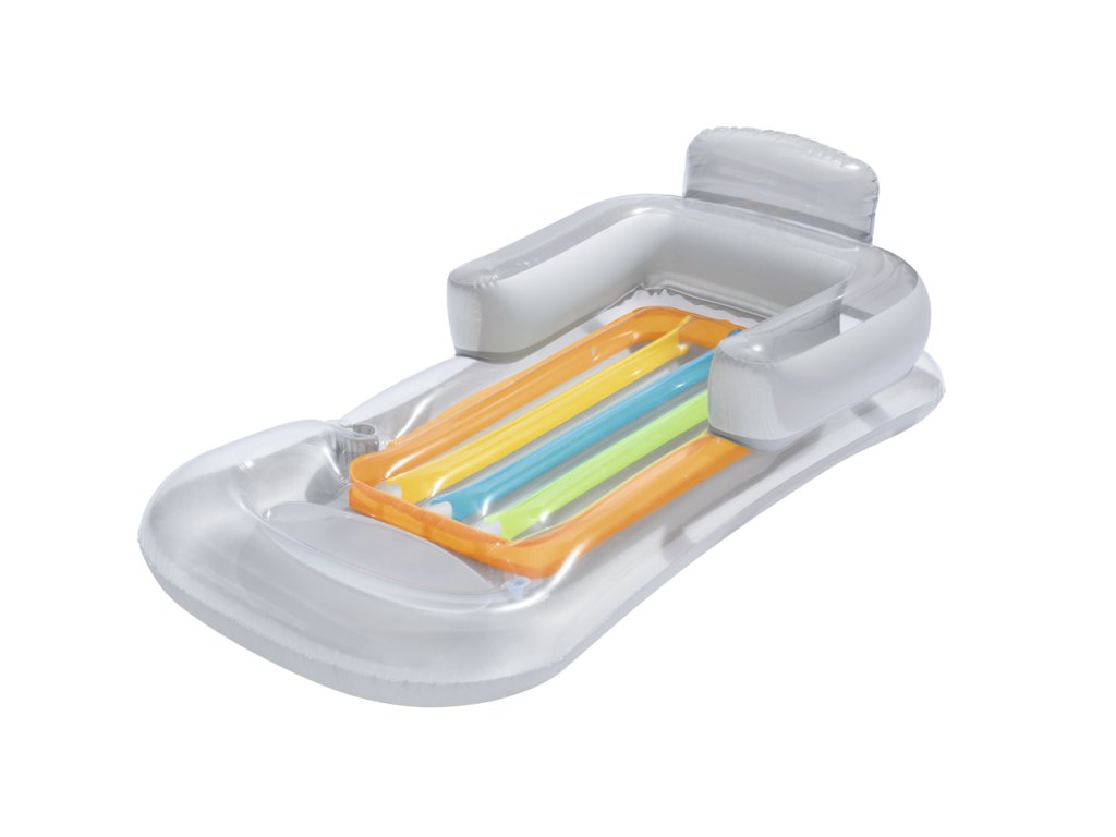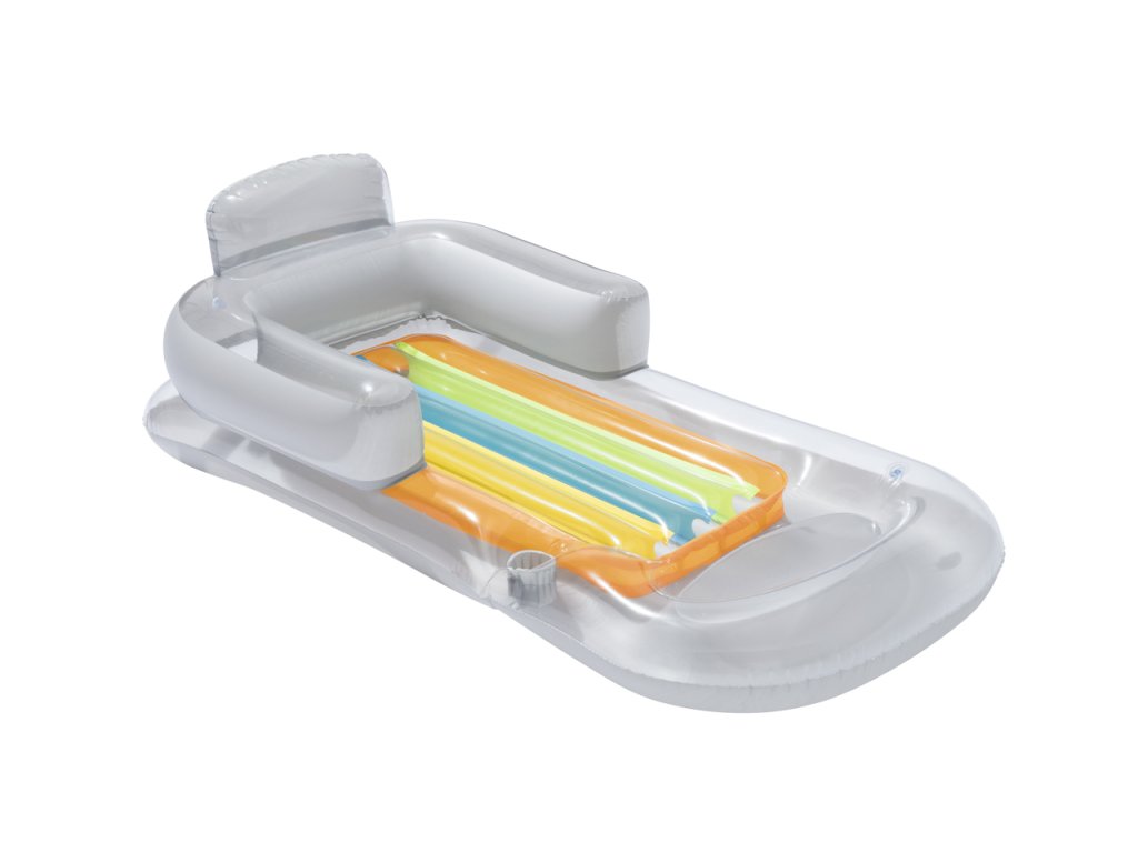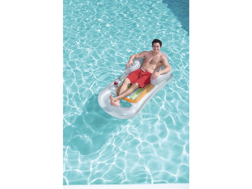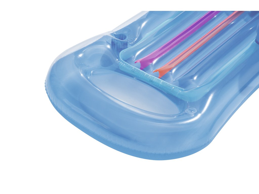LEHÁTKO MÓDNÍ NÁVRHÁŘ je ideální na relax na vlnách s chlazeným drinkem po ruce. Lehátko obsahuje bezpečnostní ventily a je vyrobeno z kalitního vinylu. Pohodlí zajistí opěradlo paží a zad. Integrovaný držák na šálek. Transparentní barevné PVC s barvenými vzduchovými kanálky. Konstrukce se 2 vzduchovými komorami. Obsahuje náhradní záplaty. V nabídce ve dvou barevných provedeních. Max. kapacita 90 kg. Určeno pro 1 dospělou osobu. Rozměr: 161 x 84 cm.