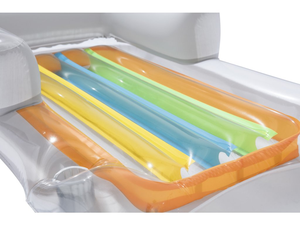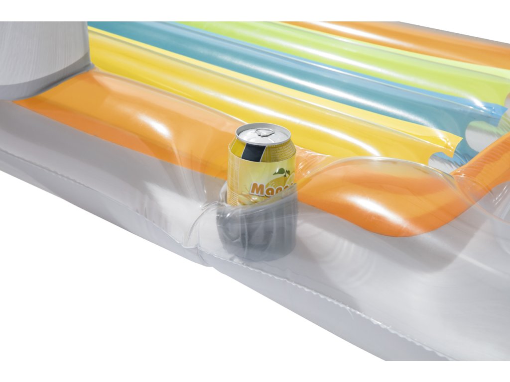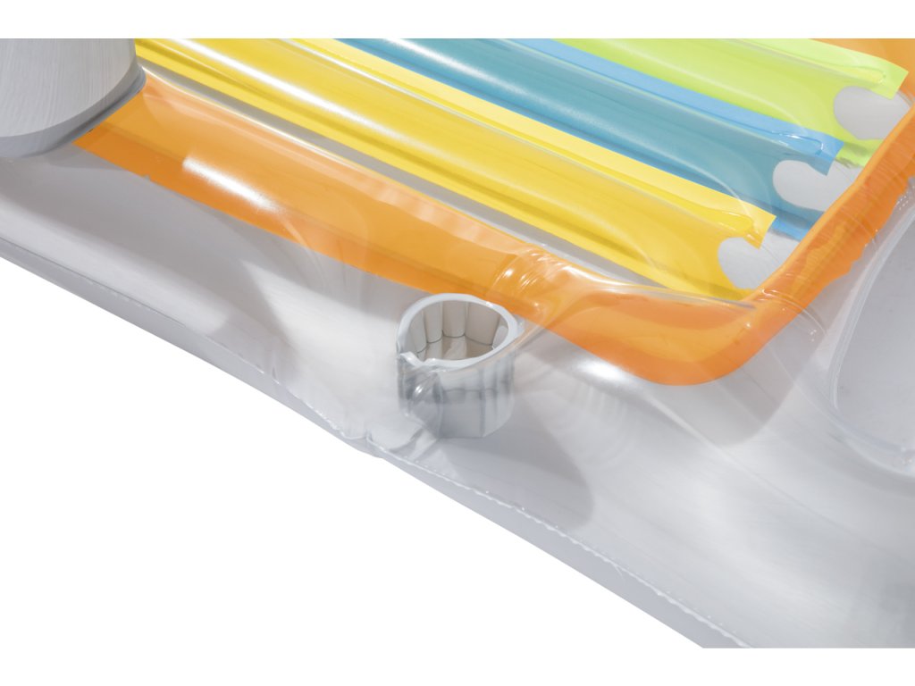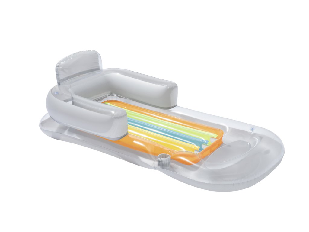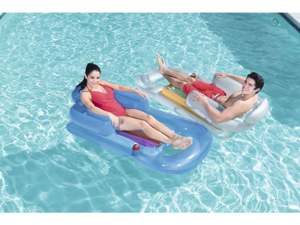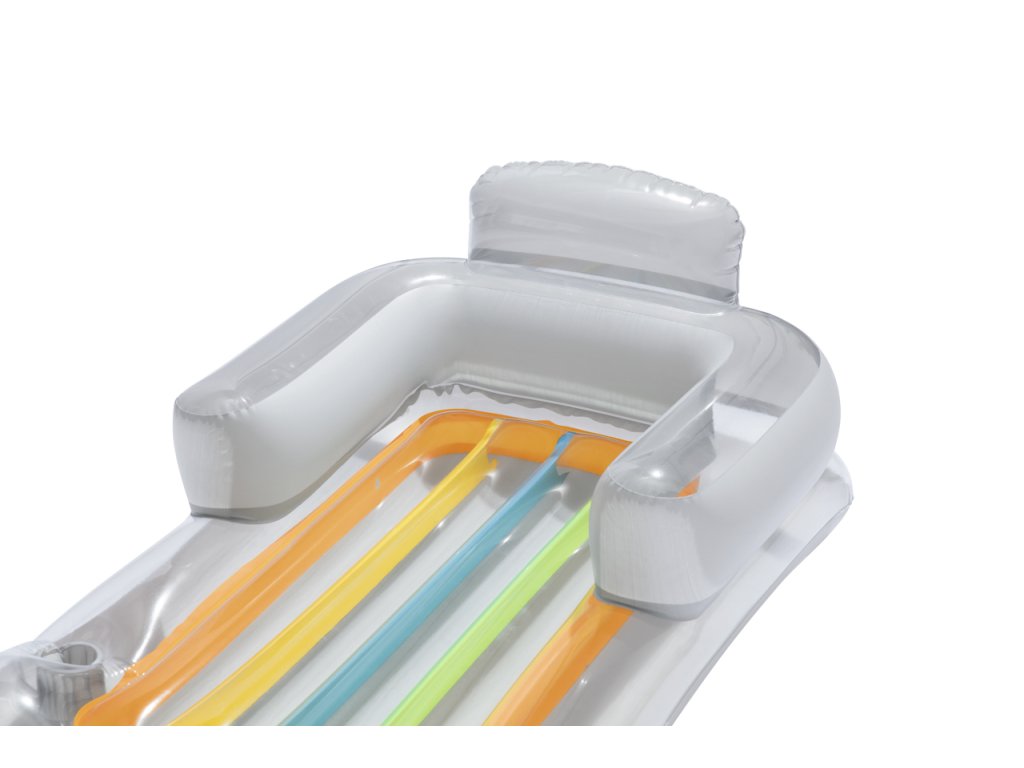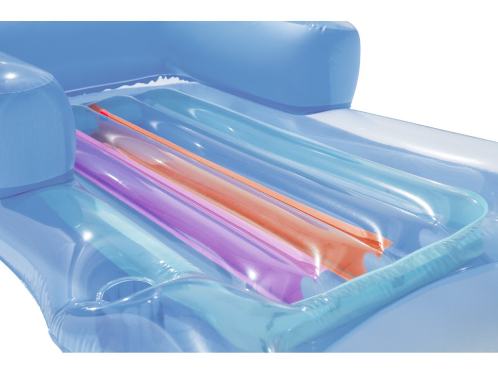 LEHÁTKO MÓDNÍ NÁVRHÁŘ je ideální na relax na vlnách s chlazeným drinkem po ruce. Lehátko obsahuje bezpečnostní ventily a je vyrobeno z kalitního vinylu. Pohodlí zajistí opěradlo paží a zad. Integrovaný držák na šálek. Transparentní barevné PVC s barvenými vzduchovými kanálky. Konstrukce se 2 vzduchovými komorami. Obsahuje náhradní záplaty. V nabídce ve dvou barevných provedeních. Max. kapacita 90 kg. Určeno pro 1 dospělou osobu. Rozměr: 161 x 84 cm.