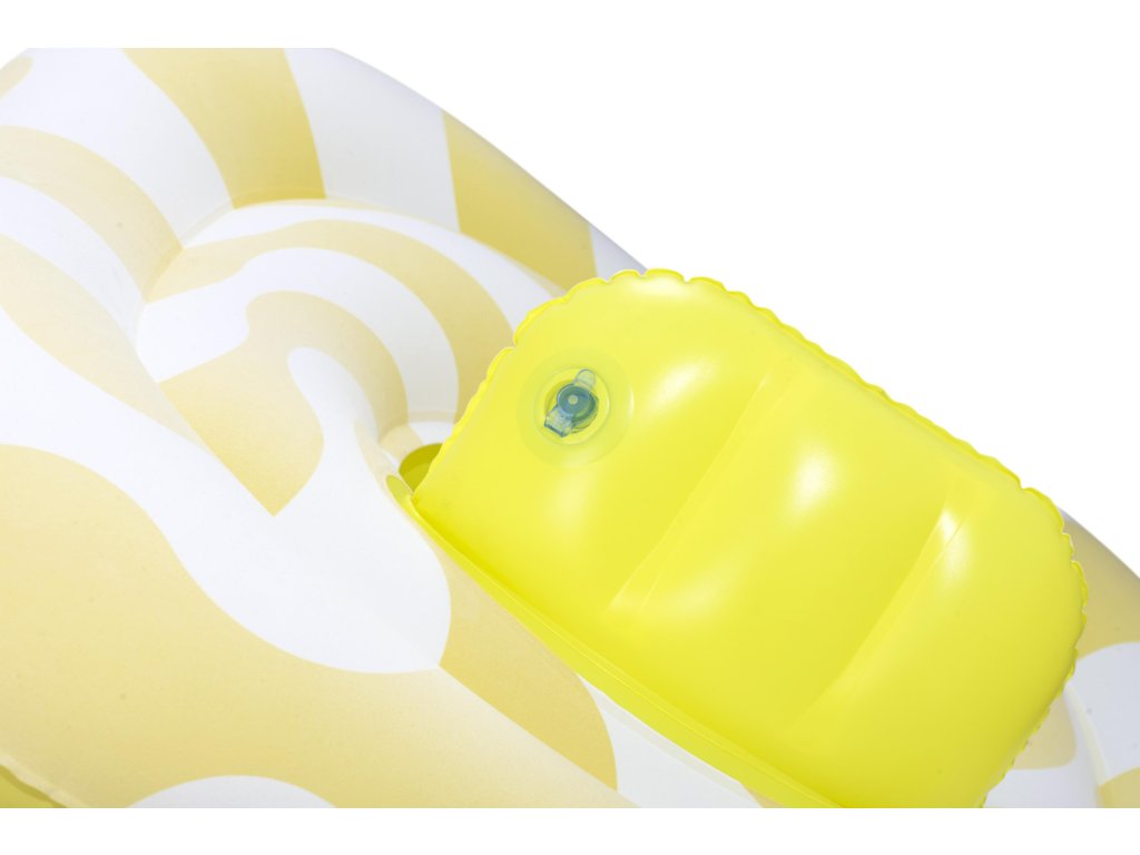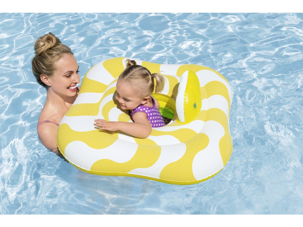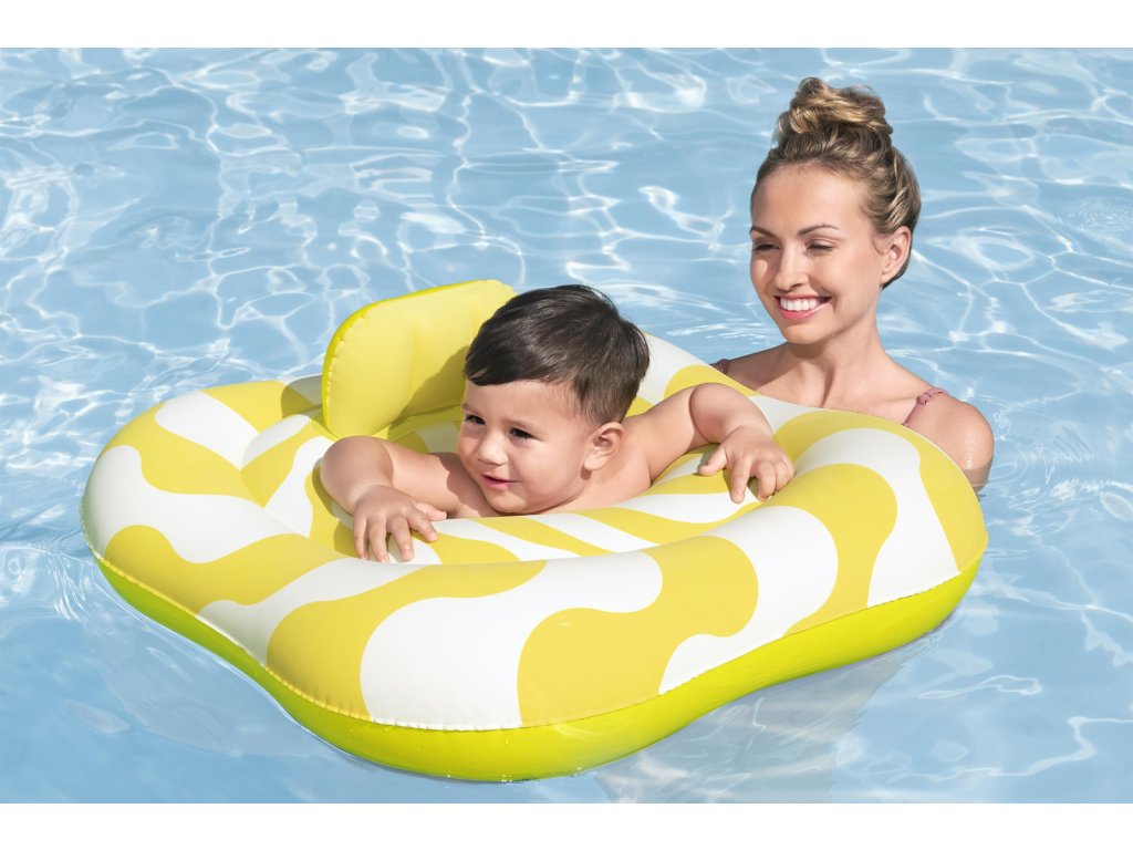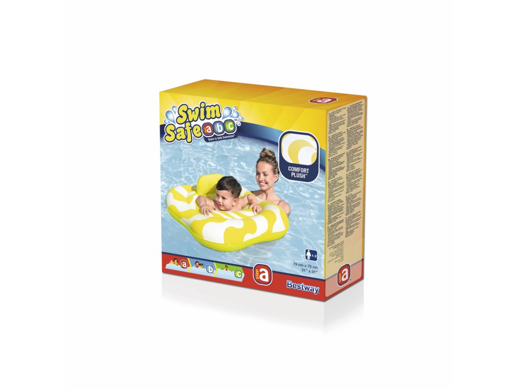 Swim Safe™ Nafukovací baby sedací kruh s opěrkou je ideální pro malé děti ve věku 1-2 roky které ještě neumí plavat, ale chtějí si vodu užívat. Comfort Plush™ měkký, hladký sametový materiál poskytuje dětem pohodlí. Barva materiálu se ve vodě stává jasnější a intenzivnější. Čtyři vzduchové komory a bezpečnostní ventily dodávají kruhu stabilitu a bezpečnost. Pomáhá dětem zvykat si na vodu v útlém věku. Nafouknutá velikost kruhu: 27 x 72 x 72 cm. Nenafouknutá velikost kruhu: 79 x 79 cm. Rozměry balení: 19,8 x 19,8 x 6,5 cm. Určeno pro 1 dítě. Maximální nosnost: 15 kg. Používejte pouze pod dohledem dospělé osoby. Věk: 1+