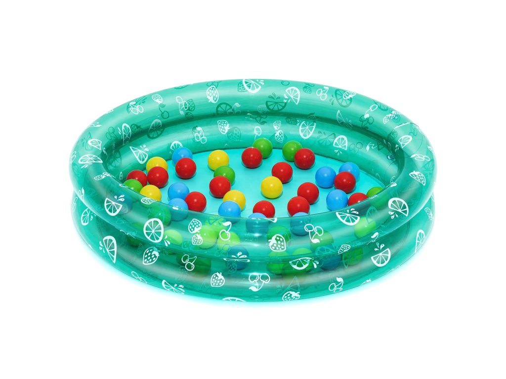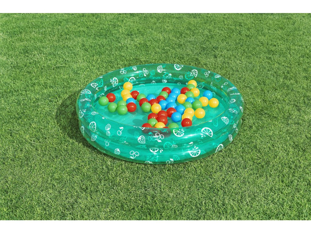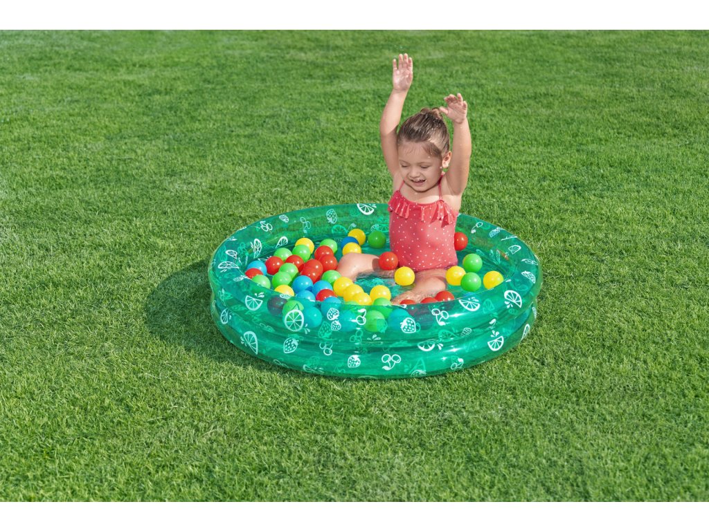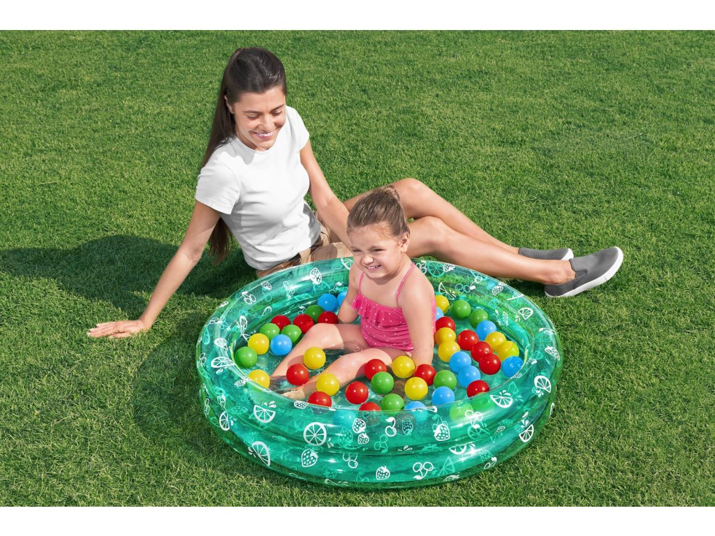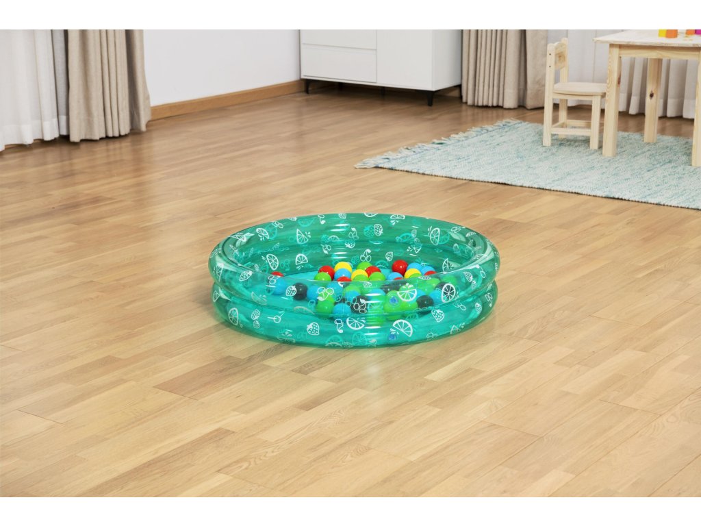 Bestway® Nafukovací bazén Splash & Play™ s 50 hracími míčky. Tato nafukovací hračka 2 v 1 přináší zábavu s míčky a bazén přímo do vašeho obývacího pokoje nebo na dvorek! Nafukovací stěny poskytují stabilní oporu, zatímco vaše ratolesti prozkoumávají bazén. Když je dobré počasí, můžete Splash & Play™ naplnit vodou a použít jej jako brouzdaliště. Bazén se snadno nafukuje a vyfukuje, takže jej lze rychle postavit a uložit. Napomáhá k rozvoji jemné motoriky. Pomáhá dítěti rozvíjet koordinaci rukou a oka, stejně jako základní úroveň zručnosti. Také podporuje sebedůvěru dítěte pomoci interaktivní hry. Vyrobeno z kvalitního a odolného PVC. Bazén má 2 vzduchové komory. Včetně opravné záplaty. Max kapacita: 73 l Nafouknutá velikost bazénu: O 91x20 cm. Nenafouknutá velikost bazénu: 83 x 83 cm. Rozměry balení: 30 x 33 x 13 cm. Používejte pouze pod dohledem dospělé osoby. Věk: 2+