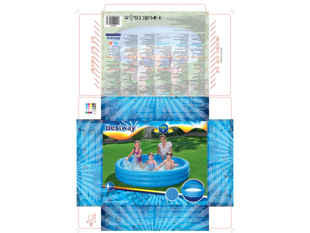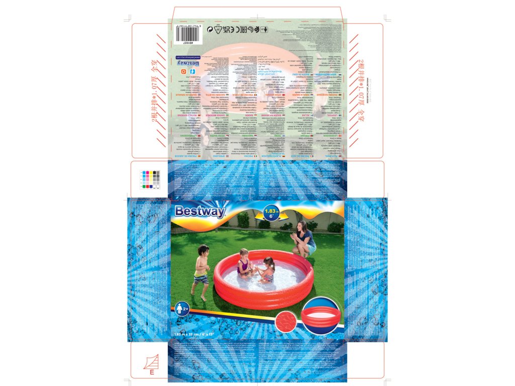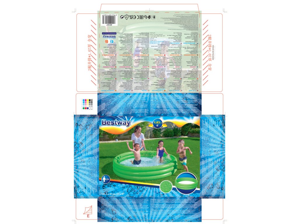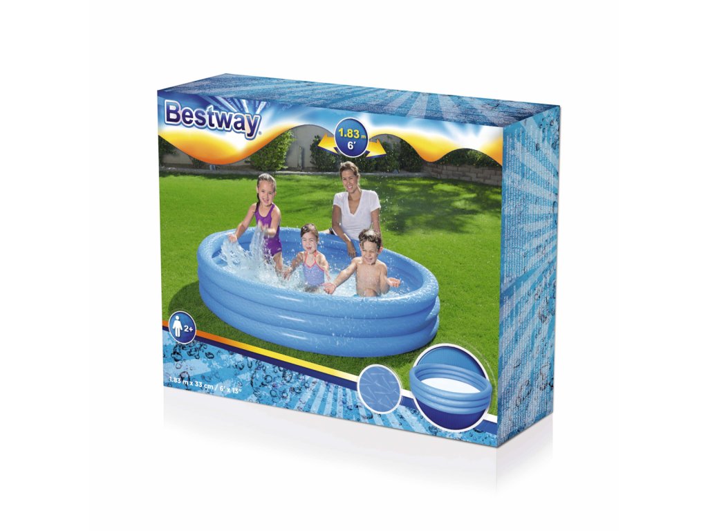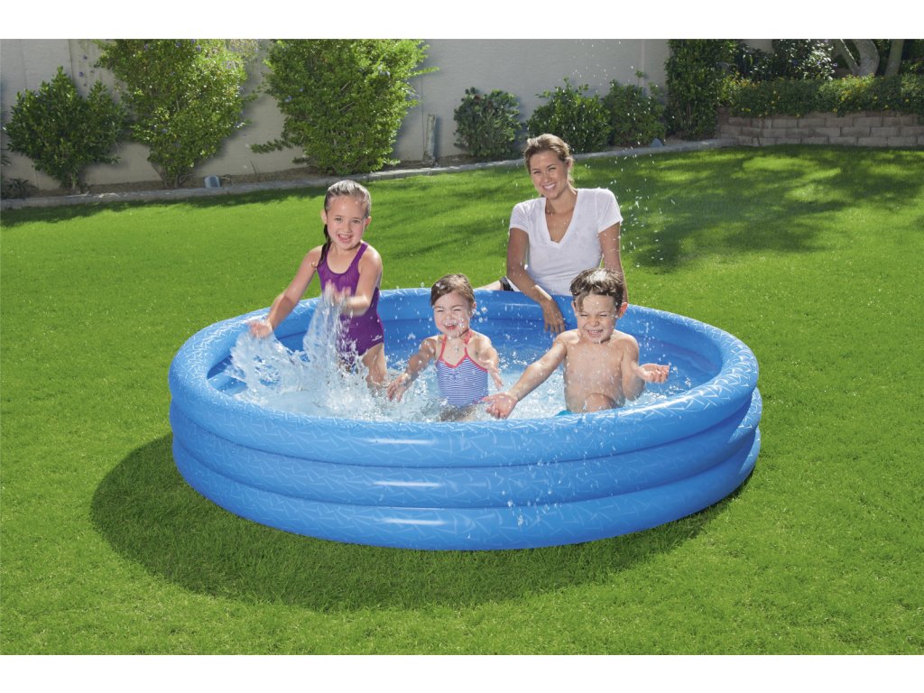 Dětský nafukovací bazének Bestway v červené, modré či zelené variantě je ideální pro osvěžení malých dětí. Skládá se ze 3 stejných kruhů, které jsou vhodné také jako opěra dětí. Vyrobeno z bezpečného a odolného vinylu. Bezpečnostní ventily. Obsahuje: 1 nafukovací bazének, 1 opravná sada. Max. kapacita: 480 l. Rozměr: 183 x 33 cm. Věk: 2+. Užívání vždy pod dohledem dospělé osoby.