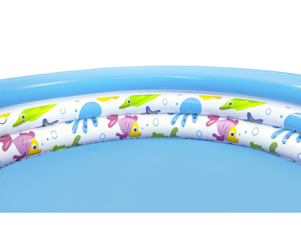 V horkých letních dnech není pro vaše nejmenší lepší osvěžení, než v nafukovacím bazénku! Bazének je vhodný jako brouzdaliště. Transparentní tříkomorový nafukovací bazén s potiskem motivu oceánu. Bazének je vyroben z kvalitního vinylu o síle 0,19 mm. Rozměr: 122 x 25 cm. Objem: 140 l. Balení: 27,5x28x3,3cm, Věk: 3+.