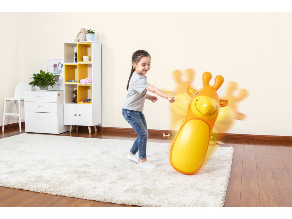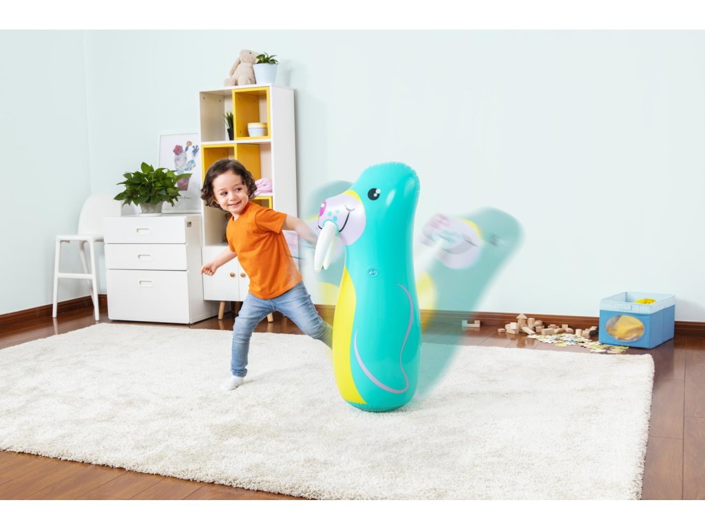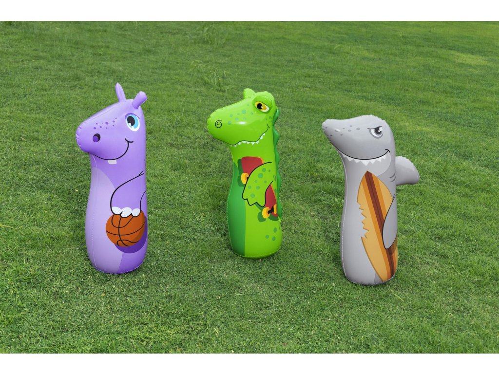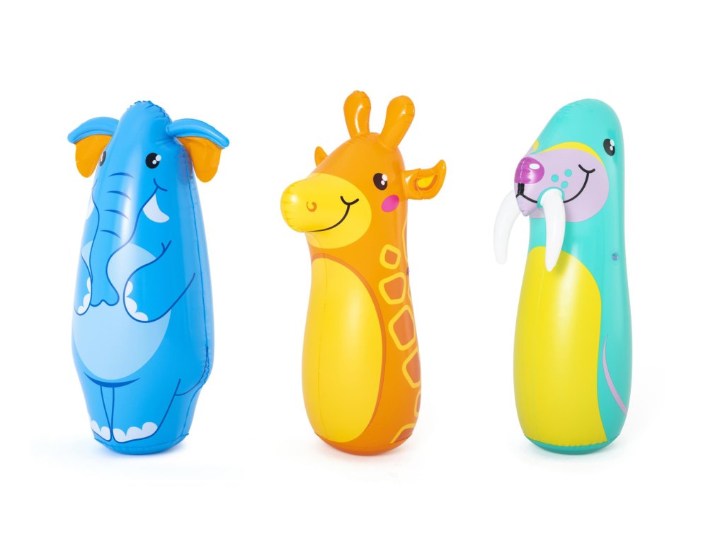 Nafukovací boxovací pytel ve tvaru zvířátka – to je správná volba pro vaše malé boxery. Pomáhá dětem odreagovat se a vybít energii. Děti si mohou vybrat z několika zvířecích designů. Ve spodní části boxovacího pytle je vestavěná vodní komora, která jej zatíží a zajistí stabilitu. Assort je náhodný mix modelů. Výběr nelze ovlivnit. Výška boxovacího pytle: 89 cm. Rozměr balení: 19 x 12 x 4 cm. Věk: 3+