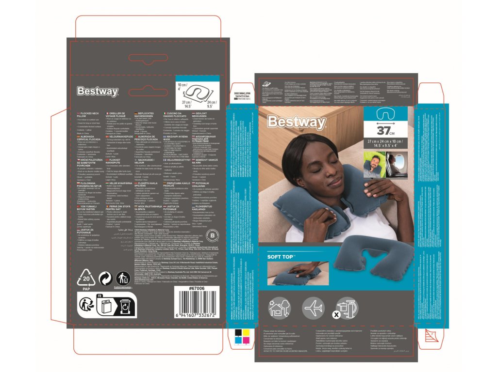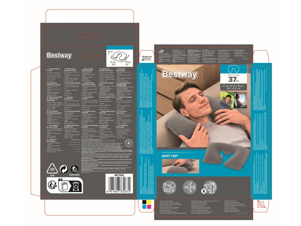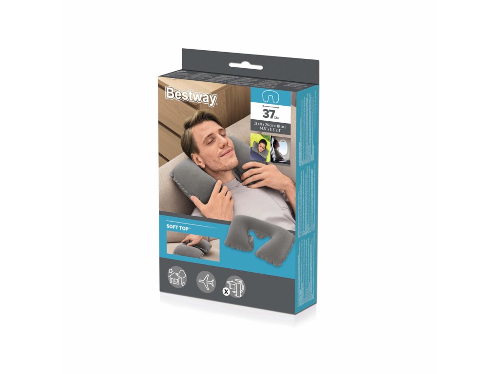 Nafukovací cestovní polštář ve tvaru podkovy má příjemný povrch a je ideální na cestování do auta, atobusu nebo letadla. Polštářek Vám zpříjemní svým tvarem cestu (tvarovené pro pohodlnou podporu krční páteře) a nezabere moc místa. Rozměr: 37 x 24 x 10 cm. Materiál: PVC semiš - velvet soft. Zelené a šedé provedení.