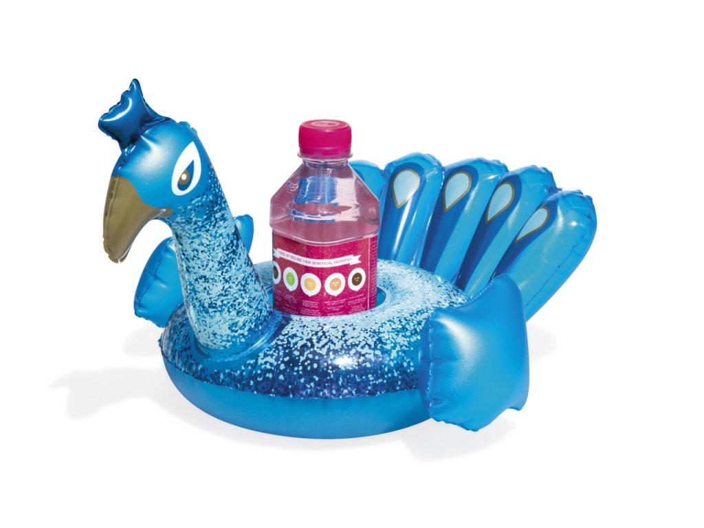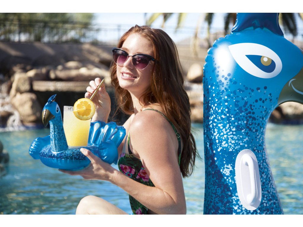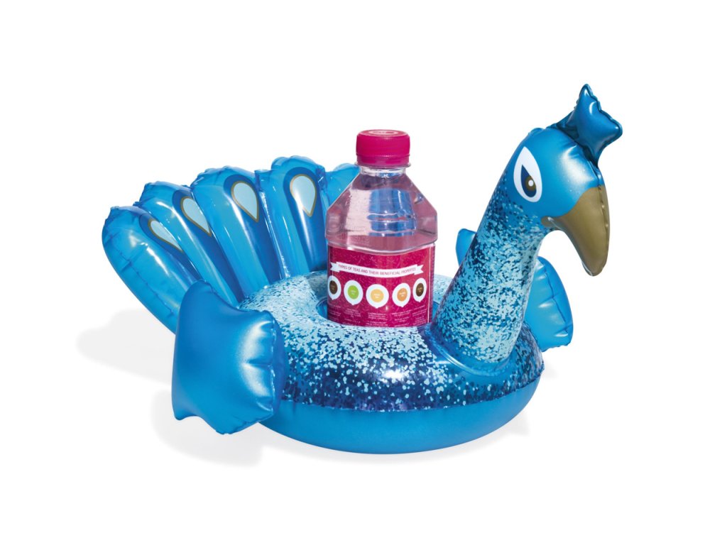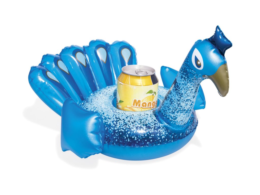 Nafukovací plovací držák na pití ve dvou atraktivních variantách - plameňák a páv. Ideální do bazénu či vířivky. Rozměr plaměňák 26,5 x 24 cm, páv 34,5 x 31 cm