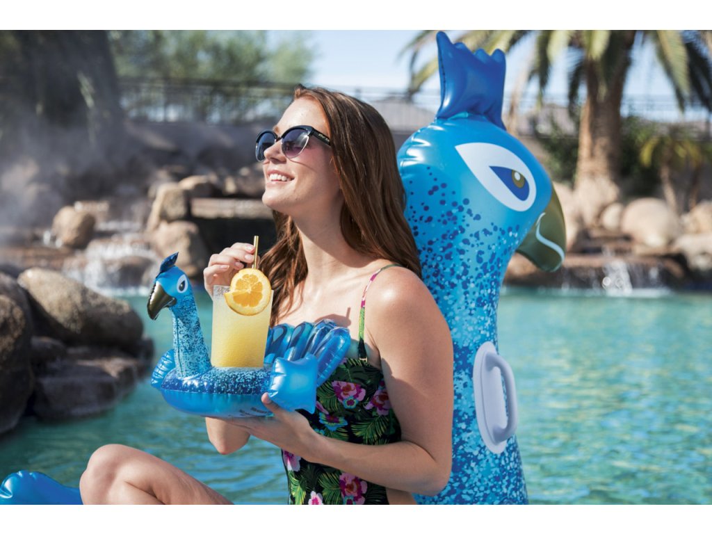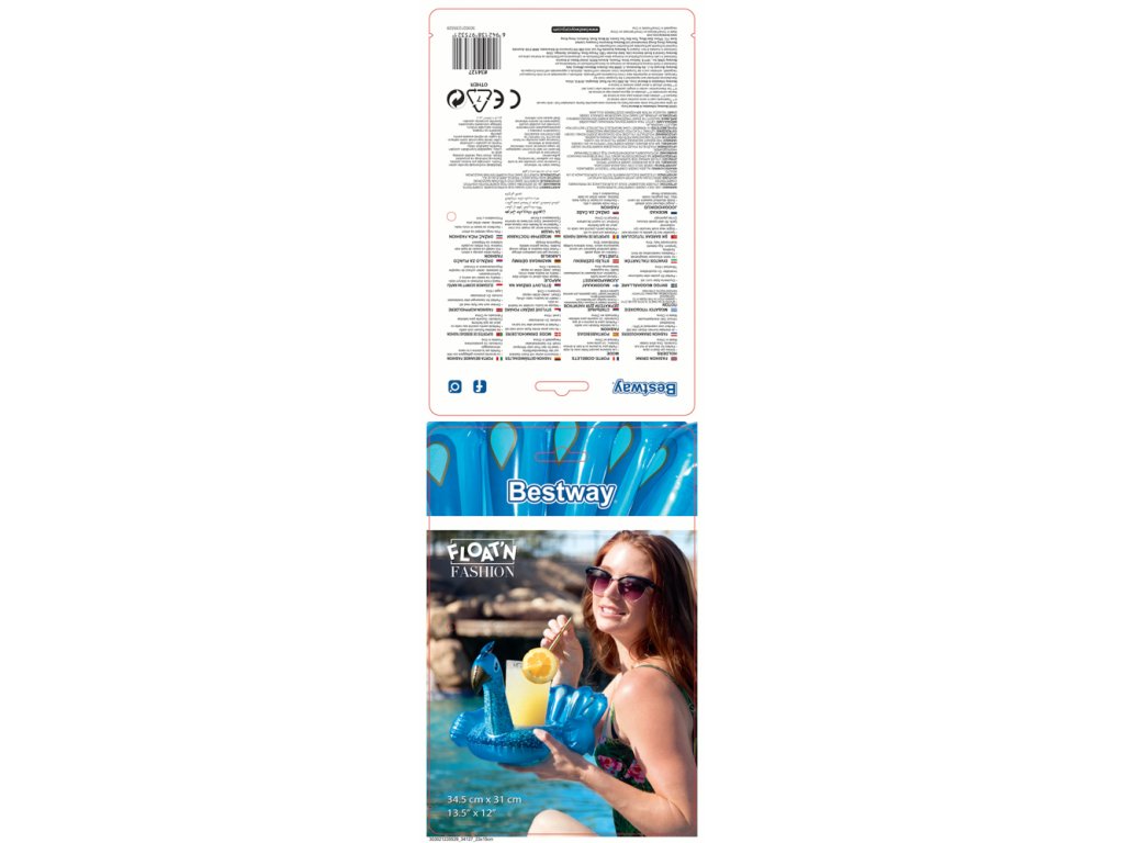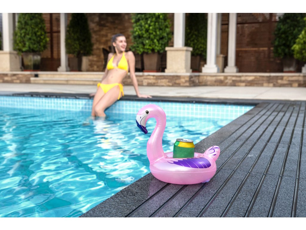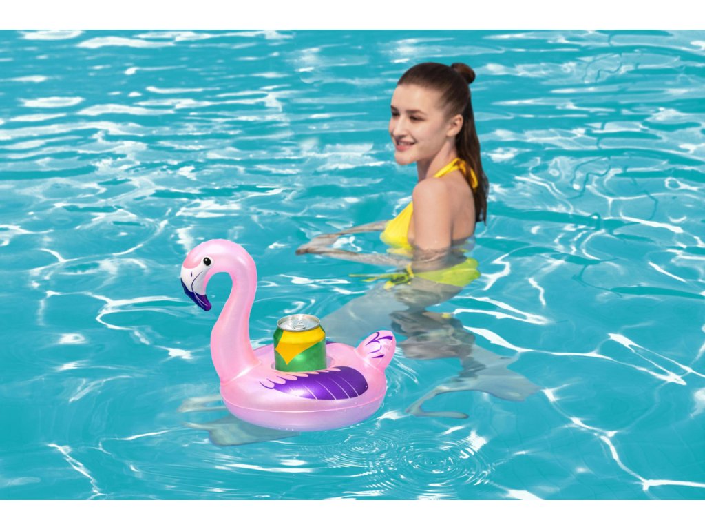 Nafukovací plovací držák na pití ve dvou atraktivních variantách - plameňák a páv. Ideální do bazénu či vířivky. Rozměr plaměňák 26,5 x 24 cm, páv 34,5 x 31 cm
