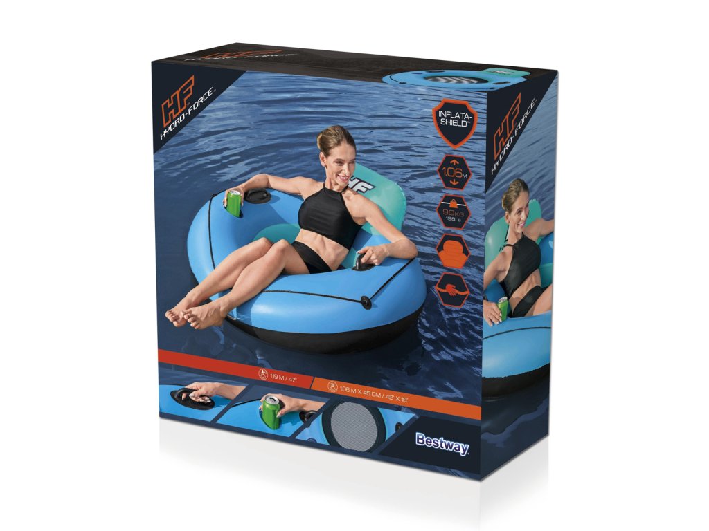 Užijte si zábavu i odpočinek u vody s přáteli a rodinou na nafukovacím křesle HF od Bestway. Křeslo je vyrobeno z pevného a odolného PVC. Vestavěné opěradlo pro vaše pohodlí, držák na studený nápoj a dno z tkané síťoviny, které vás bude udržovat v chladu. Díky robustním rukojetím a ovinovacímu lanu bude nastupování snadné. Křeslo má blokující se ventil pro rychlé vypouštění. Rozměr nafouknutého křesla: 106 x 106 x 45 cm. Maximální nosnost: 90 kg. Obsahuje: 1 nafukovací křeslo, 1 opravná záplata. Určeno pro 1 dospělou osobu.