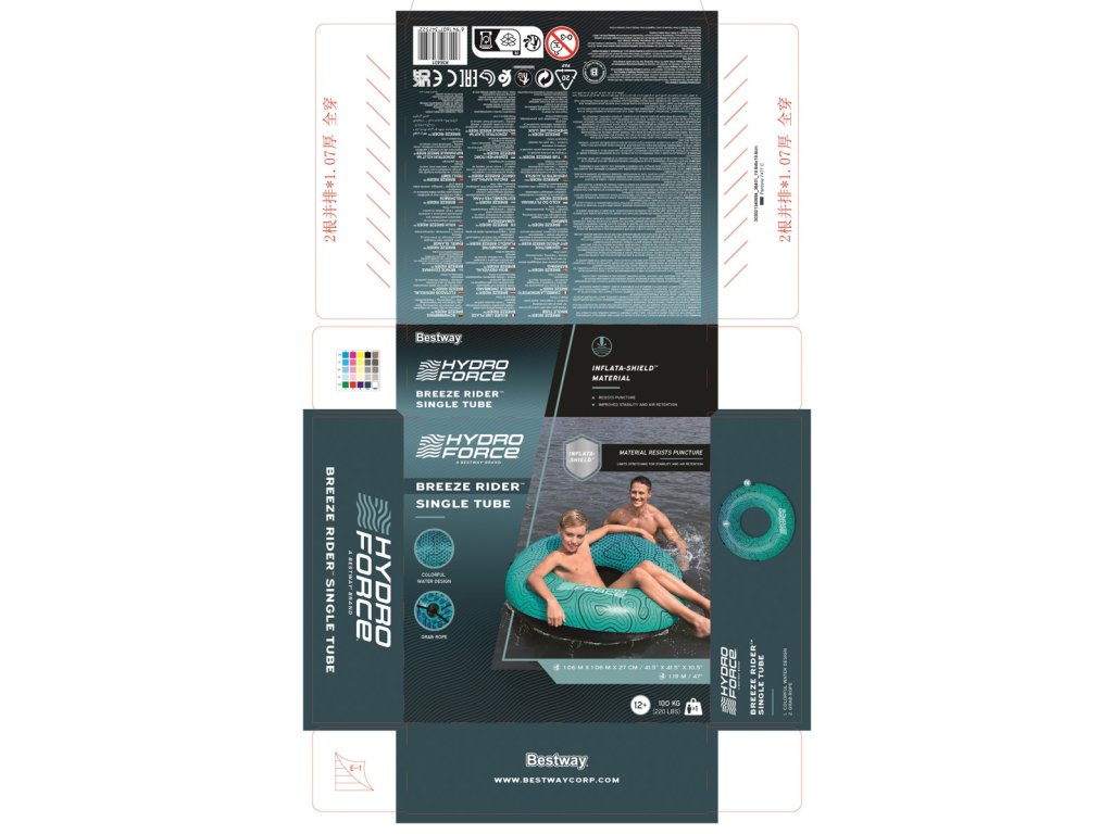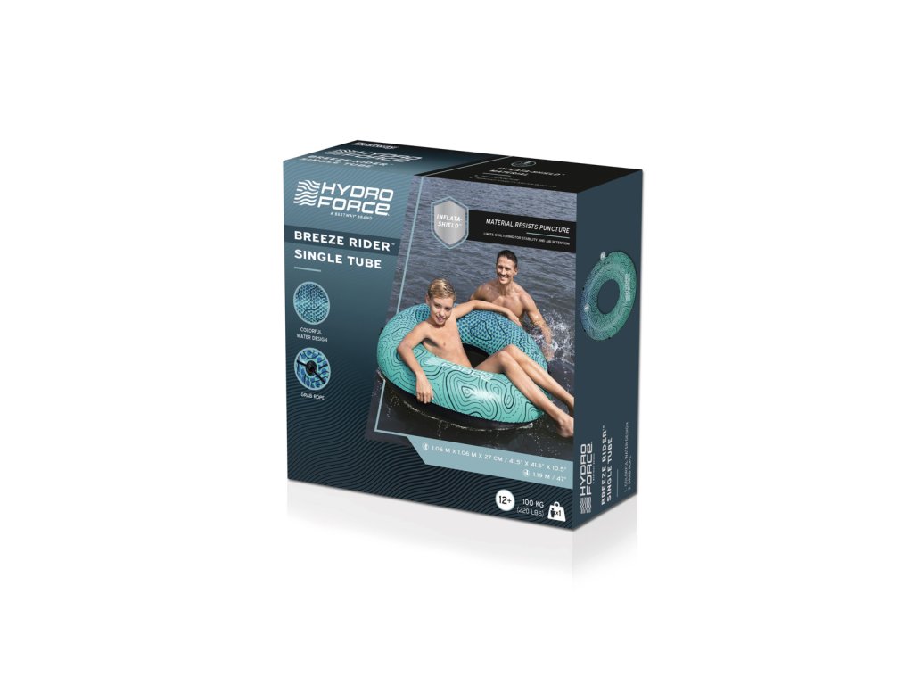 Bestway® Hydro-Force™ Nafukovací kruh Breeze Rider™ umožní malým i větším plavcům užít si zábavu ve vodě. Vyrobený je z velmi kvalitního a odolného PVC materiálu a disponuje průměrem 119 cm. Plovací kruh Bestway je ideálním doplňkem pro vodní aktivity dětí i dospělých. Stačí si do něj sednout a nechat se unášet vodou. Kruh má jednu vzduchovou komoru, pojistné ventily a elastický popruh po polovině obvodu. Včetně opravné záplaty. Nafouknutá velikost kruhu: O 106 x 27 cm. Nenafouknutá velikost kruhu: O 119. Rozměry balení: 19,8 x 19,8 x 6 cm. Určeno pro 1 osobu. Maximální nosnost: 100 kg. Věk: 12+