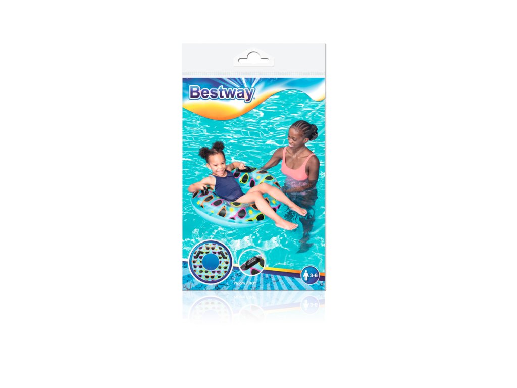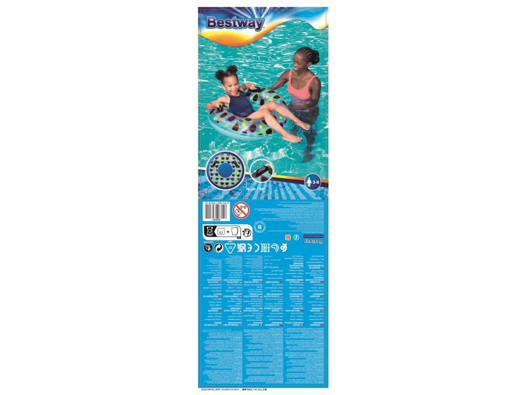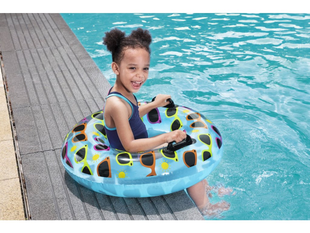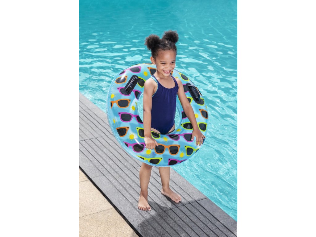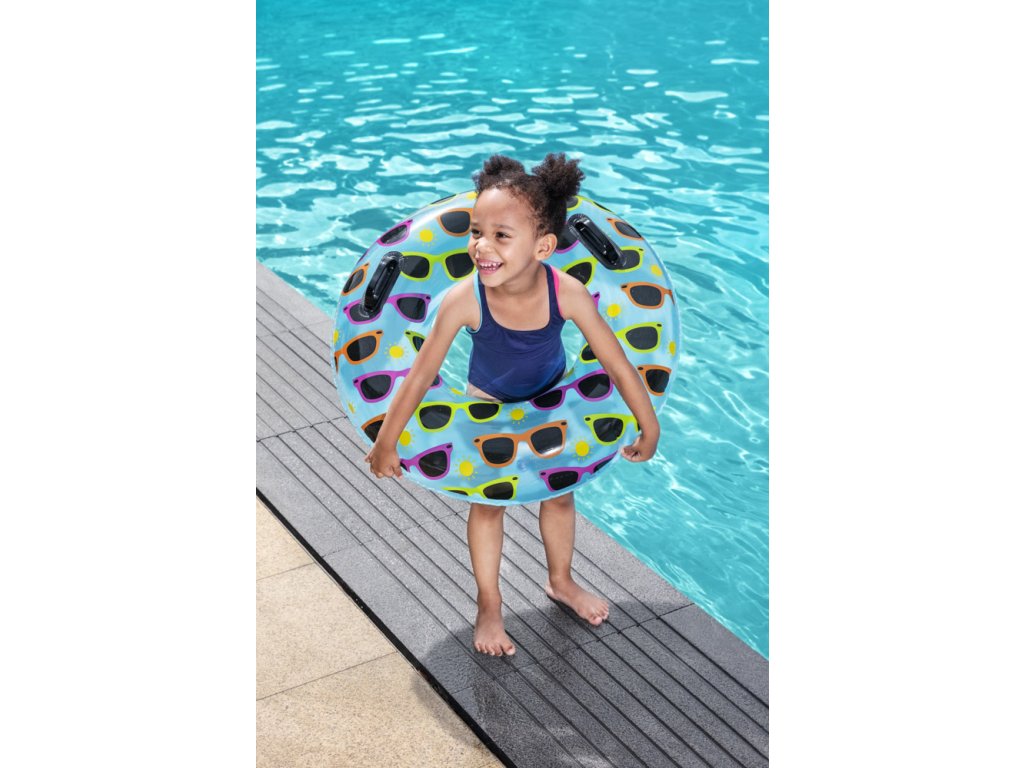 Bestway nafukovací kruh Designer s trendy barevným potiskem slunečních brýlí si děti zamilují. Kruh má bezpečnostní ventil a je vyroben z pevného a předem otestovaného vinylu. Rozměr: 76 cm. Kruh se snadno nafukuje, vyfukuje a skládá. Doporučený věk: 3-6 let. Obsahuje: 1 nafukovací kruh. Užívání vždy pod dohledem dospělé osoby. Rozměr balení: 17 x 29 x 1,2 cm.