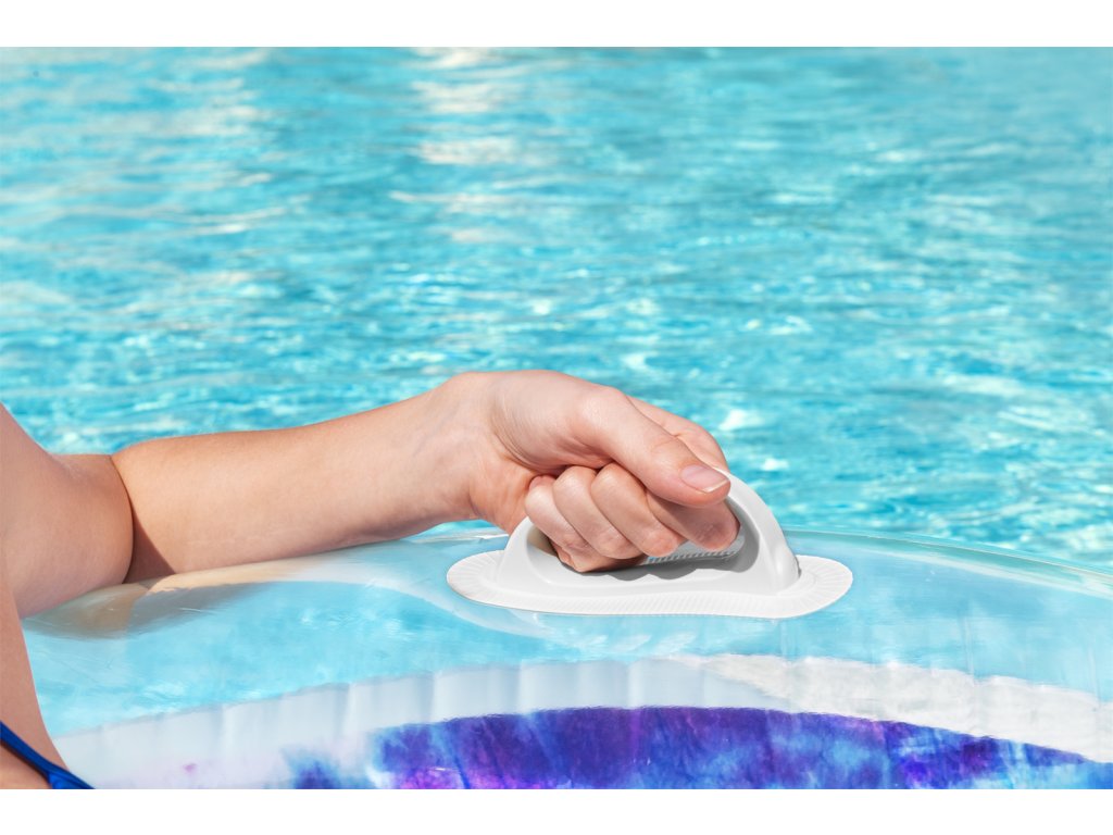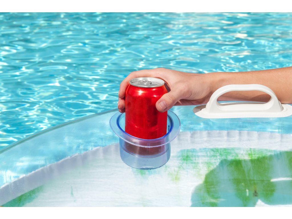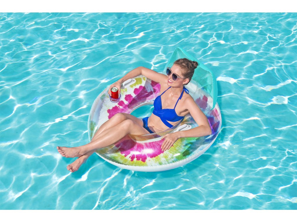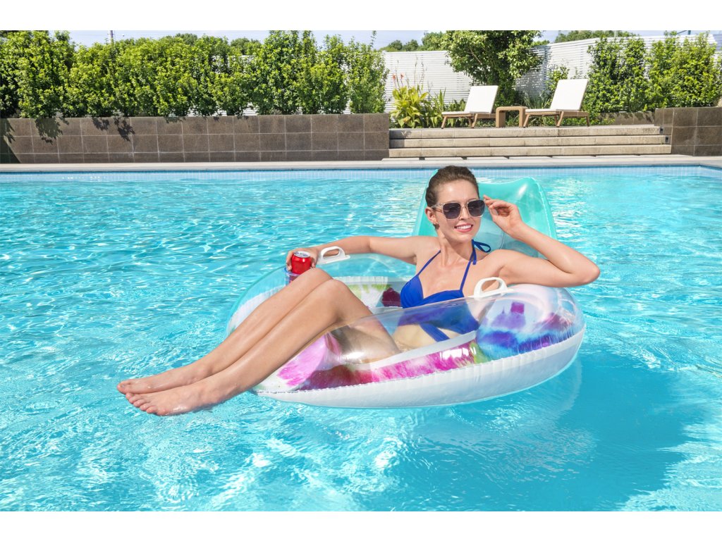 Nafukovací kruh do vody ve veselém letním designu. Vyroben z velmi odolného materiálu se dvěma pevnými madly. S pohodlnou opěrkou a držákem na nápoj. Rozměr: 118x117 cm. Věk: 12+