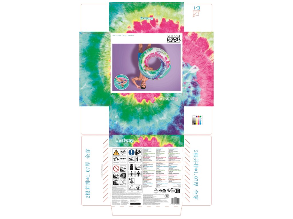 Nafukovací kruh/křeslo s úchyty Tie Dye, 118x117 cm