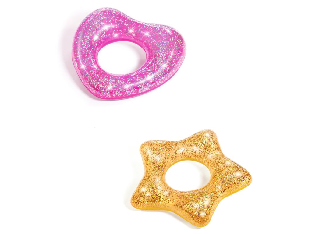 Nafukovací kruh se třpytkami - mix 2 druhy (srdce,hvězda), průměr 91cm