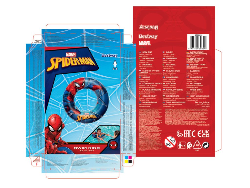 Lákavé barevné provedení nafukovacího kruhu s oblíbeným designem Spider-Man dodá odvahu začít s výukou plavání každému dítěti. Nechrání před nebezpečím utonutí. Vyrobeno z kvalitního vinylu. Průměr kruhu: 56 cm Věk: 3-6 let Vždy v doprovodu s dospělou osobou!