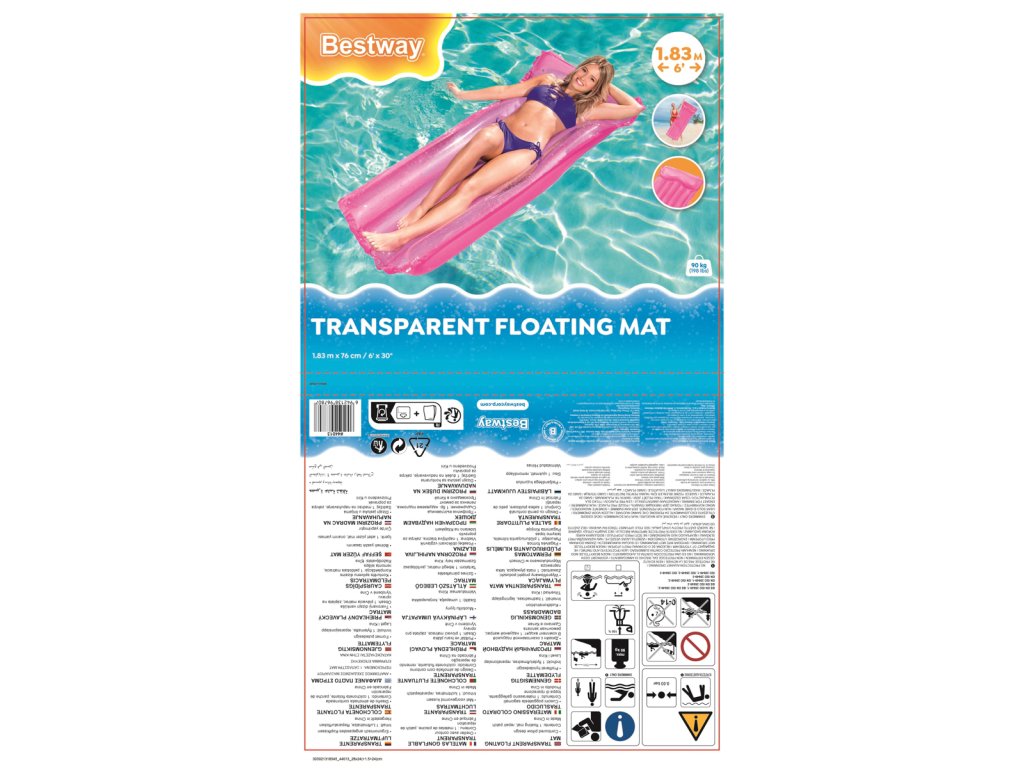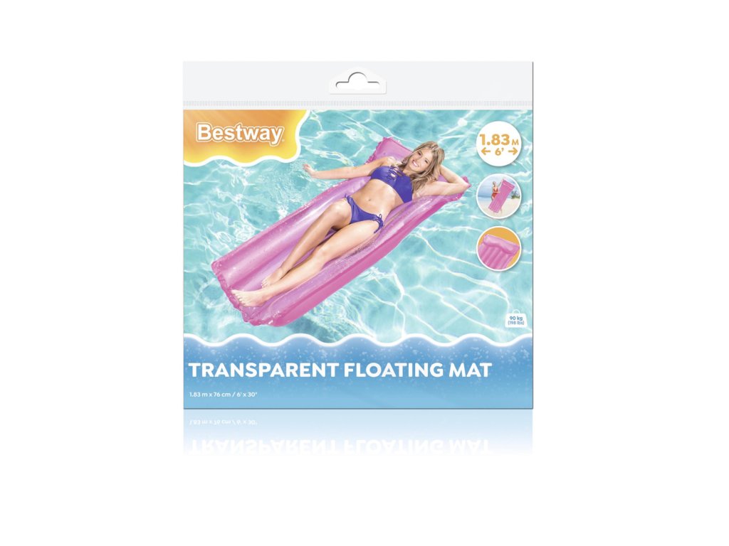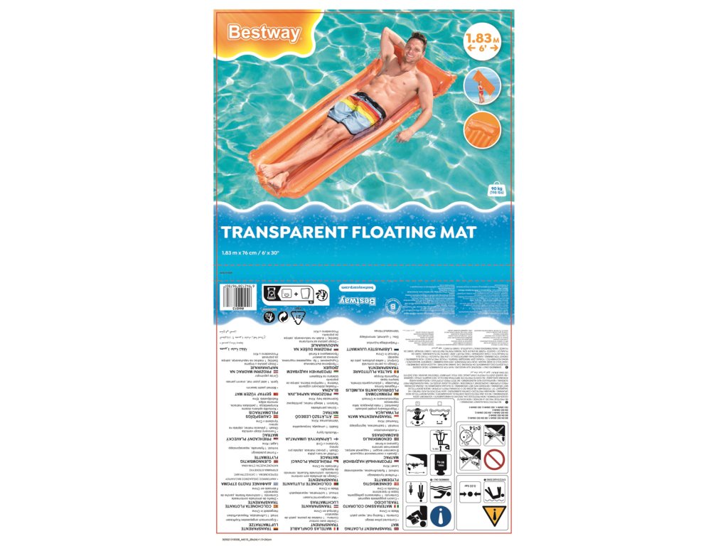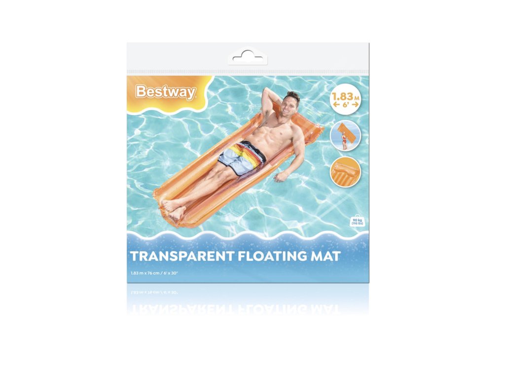 Nafukovací lehátko, průhledné, 183 x 76 cm, 4 ast. modrá, oranžová, růžová, šedá