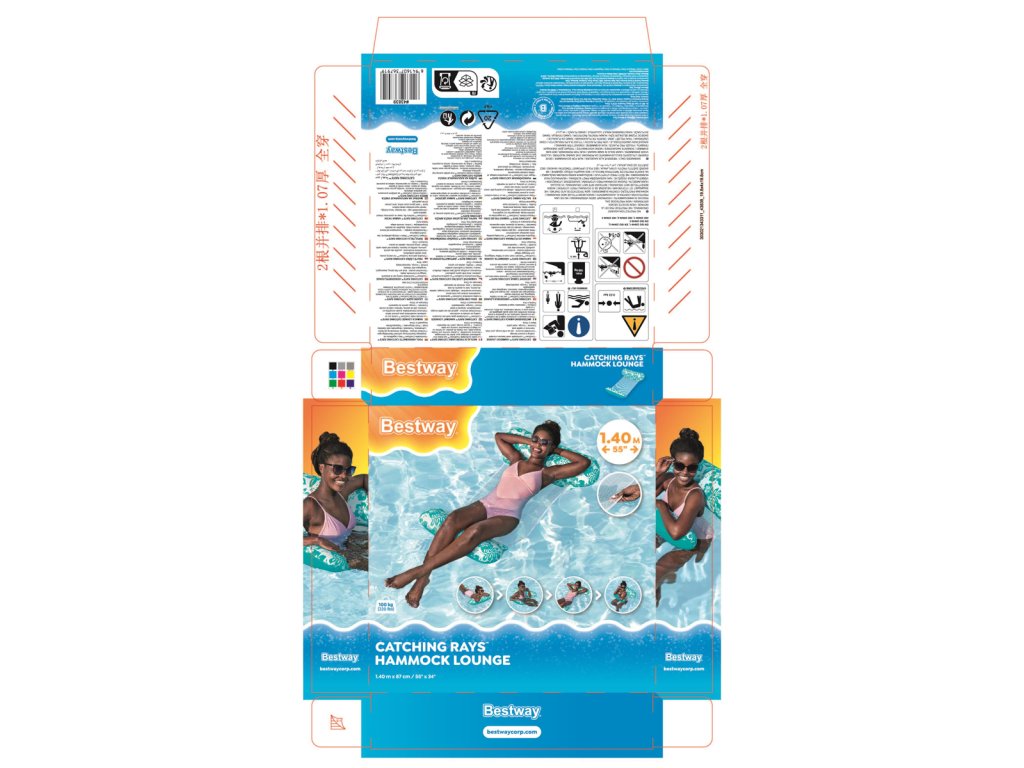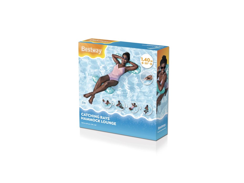 Bestway® Nafukovací lehátko s povrchem Color Shield™ a síťkou. Příjemná síťovina CoolDown™ je opatřena trvanlivým potahem, který brání jejímu poškození. Povrchová úprava Color Shield™ zabraňuje vyblednutí a změně barvy povrchu. Tvárná konstrukce – možné použití jako rovná nafukovací matrace, bazénové křeslo, nebo houpací síť. Lehátko má dvě vzduchové komory a pojistné ventily. Včetně opravné záplaty. Nafouknutá velikost: 22 x 81 x 114 cm. Nenafouknutá velikost: 87 x 140 cm. Rozměry balení: 19,8 x 19,8 x 4 cm. Určeno pro 1 osobu. Maximální nosnost: 100 kg. Věk: 14+