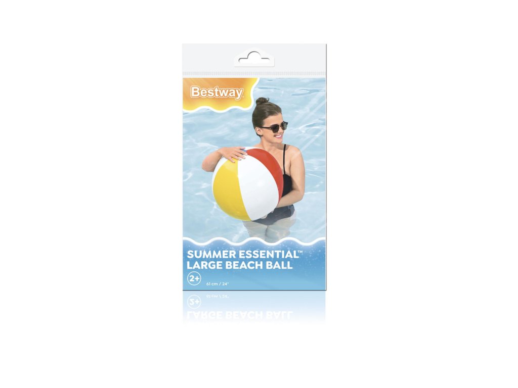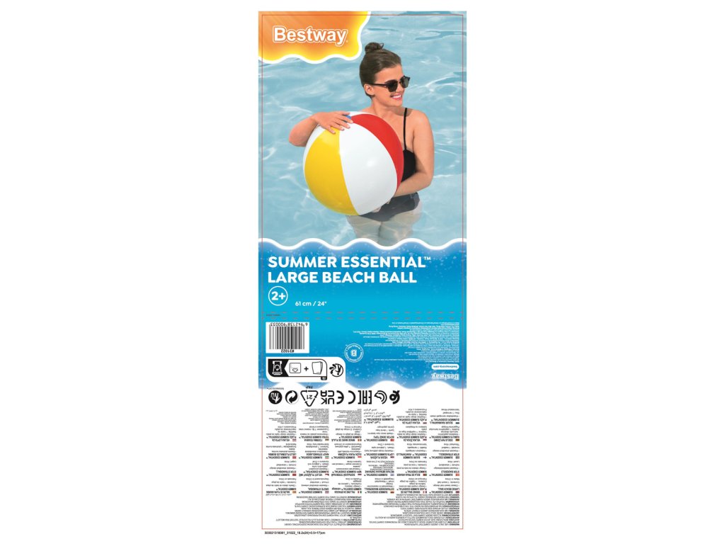 Bestway nafukovací plážový míč s bezpečnostním ventilem. Průměr 61 cm. Pevný a předem otestovaný vinyl. Obsahuje: 1 plážový míč. Věk: 2+